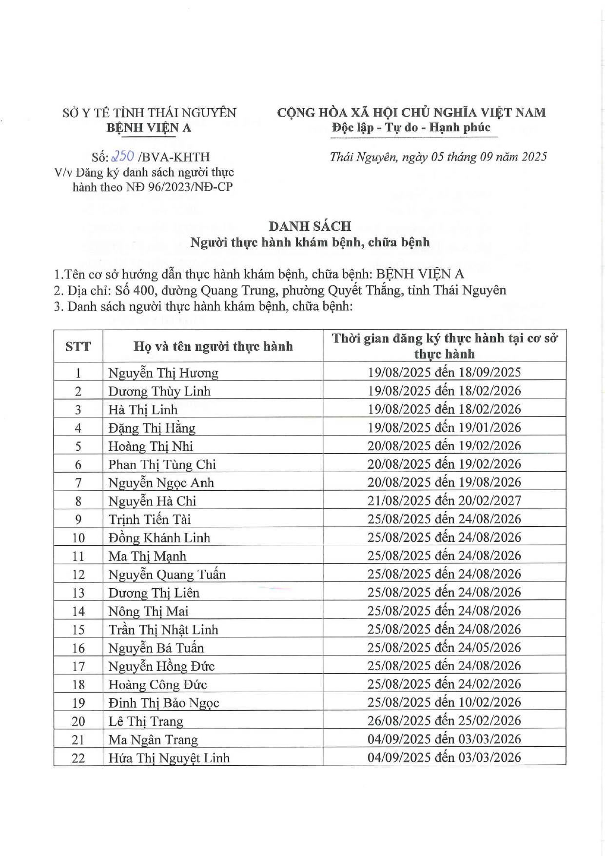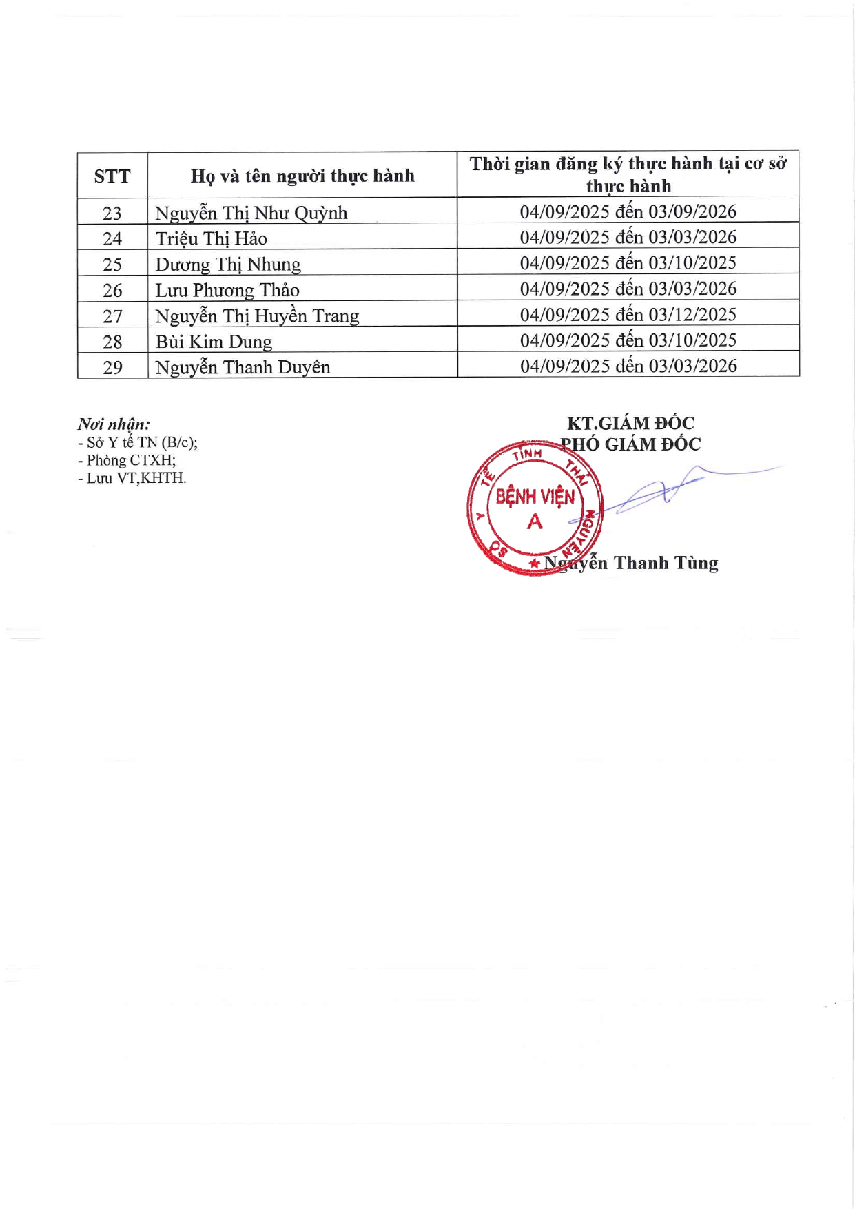 • Danh sách người thực hành khám bệnh, chữa bệnh ( 30/09/2025)