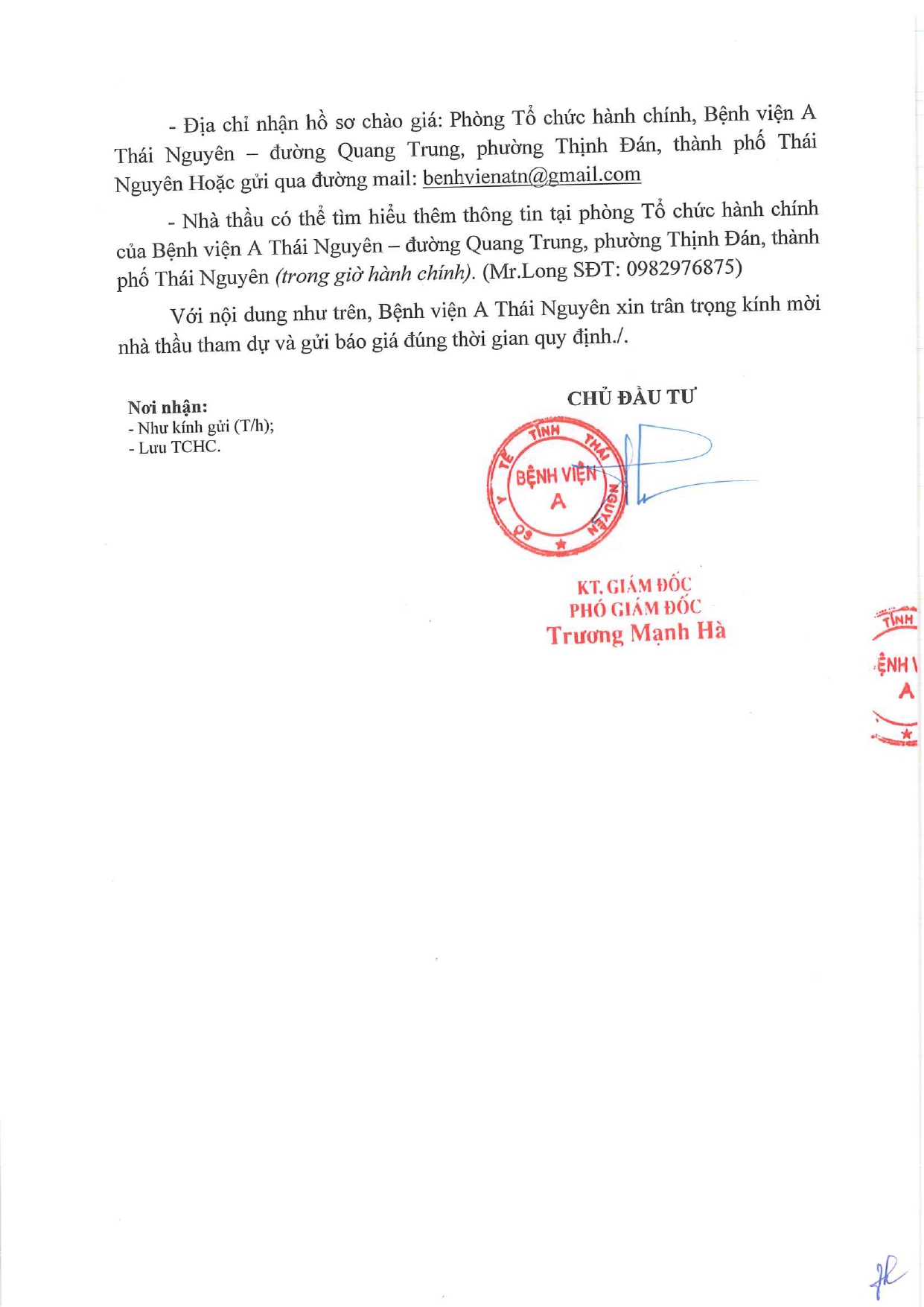 • Thông báo mời chào giá gói thầu: Bảo dưỡng và thay thế linh kiện máy gây mê và máy thở chức năng cao của Bệnh viện A Thái Nguyên ( 19/09/2025)