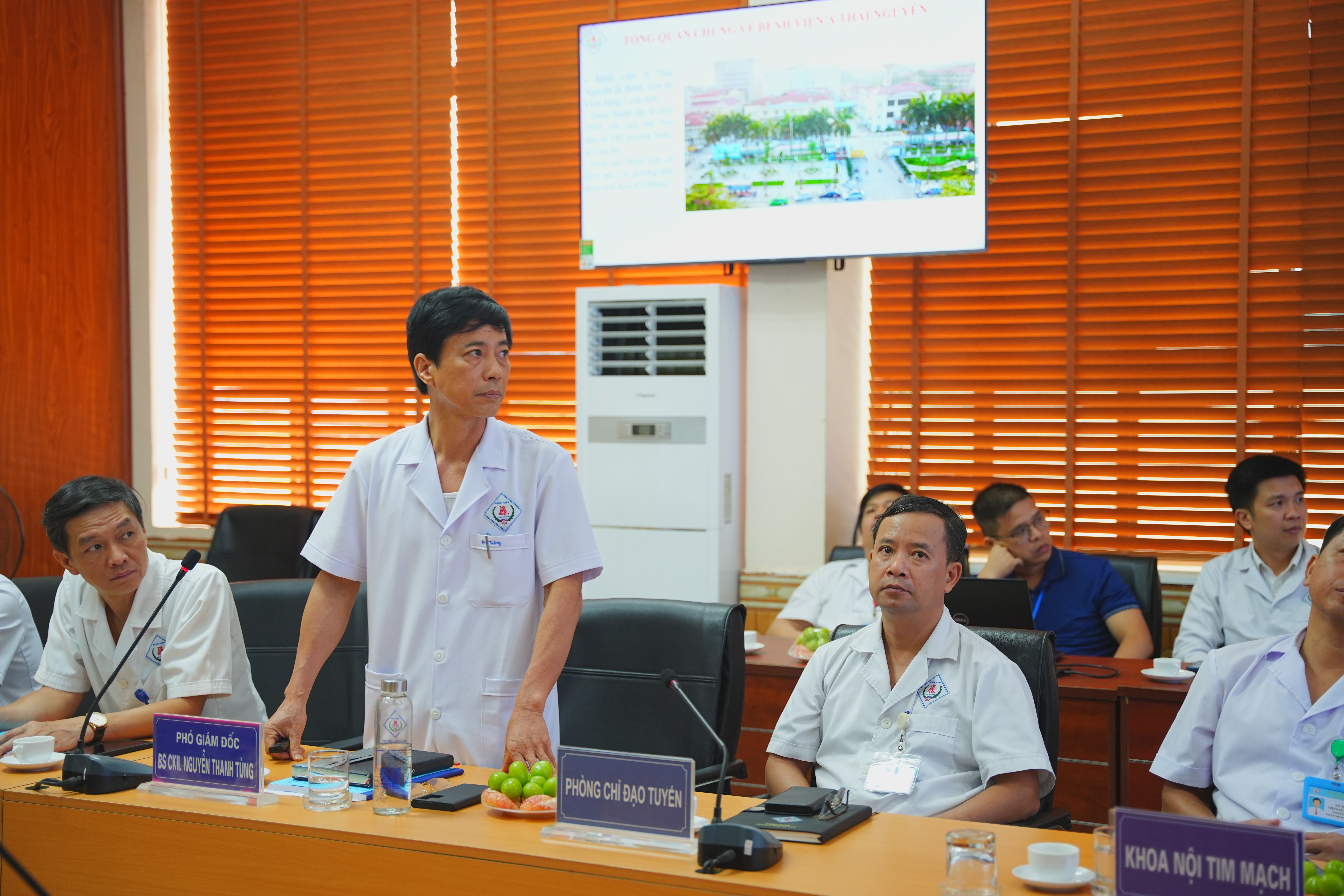 Tham gia Đoàn công tác của Bộ y tế có các thành viên là các chuyên gia đến từ Bệnh viện Hữu Nghị Việt Đức, Bệnh viện Bạch Mai và đại diện các phòng chuyên môn của Cục quản lý khám chữa bệnh, Cục Hạ tầng và Thiết bị y tế, Vụ Pháp chế - Bộ y tế, PGS. TS. BS Lưu Thị Bình - Phó Giám đốc Sở Y tế Thái Nguyên.