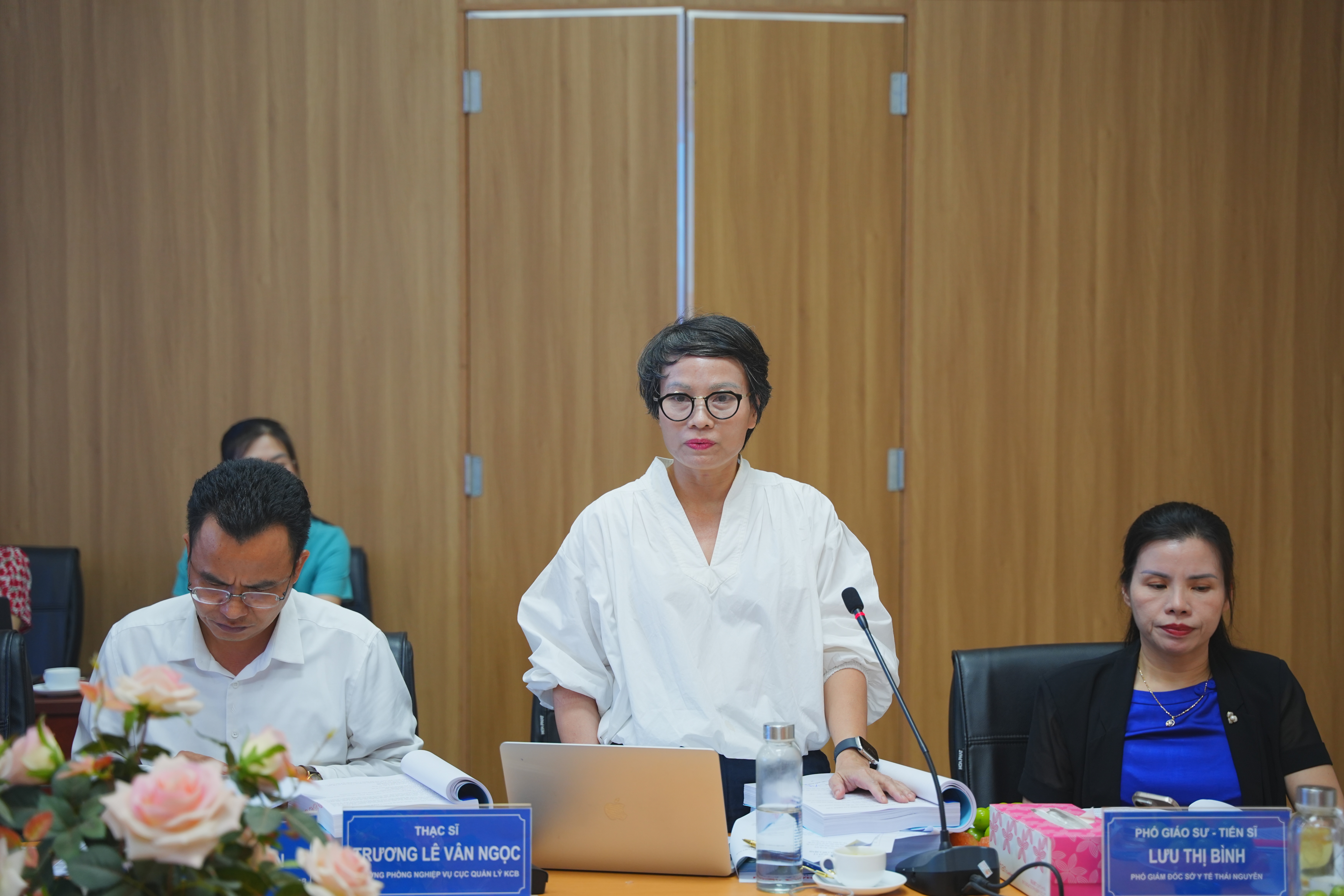 TS. Vương Ánh Dương - Phó Cục trưởng Cục Quản lý Khám, chữa bệnh, Bộ Y tế, Chủ tịch Hội đồng đánh giá phát biểu tại buổi làm việc