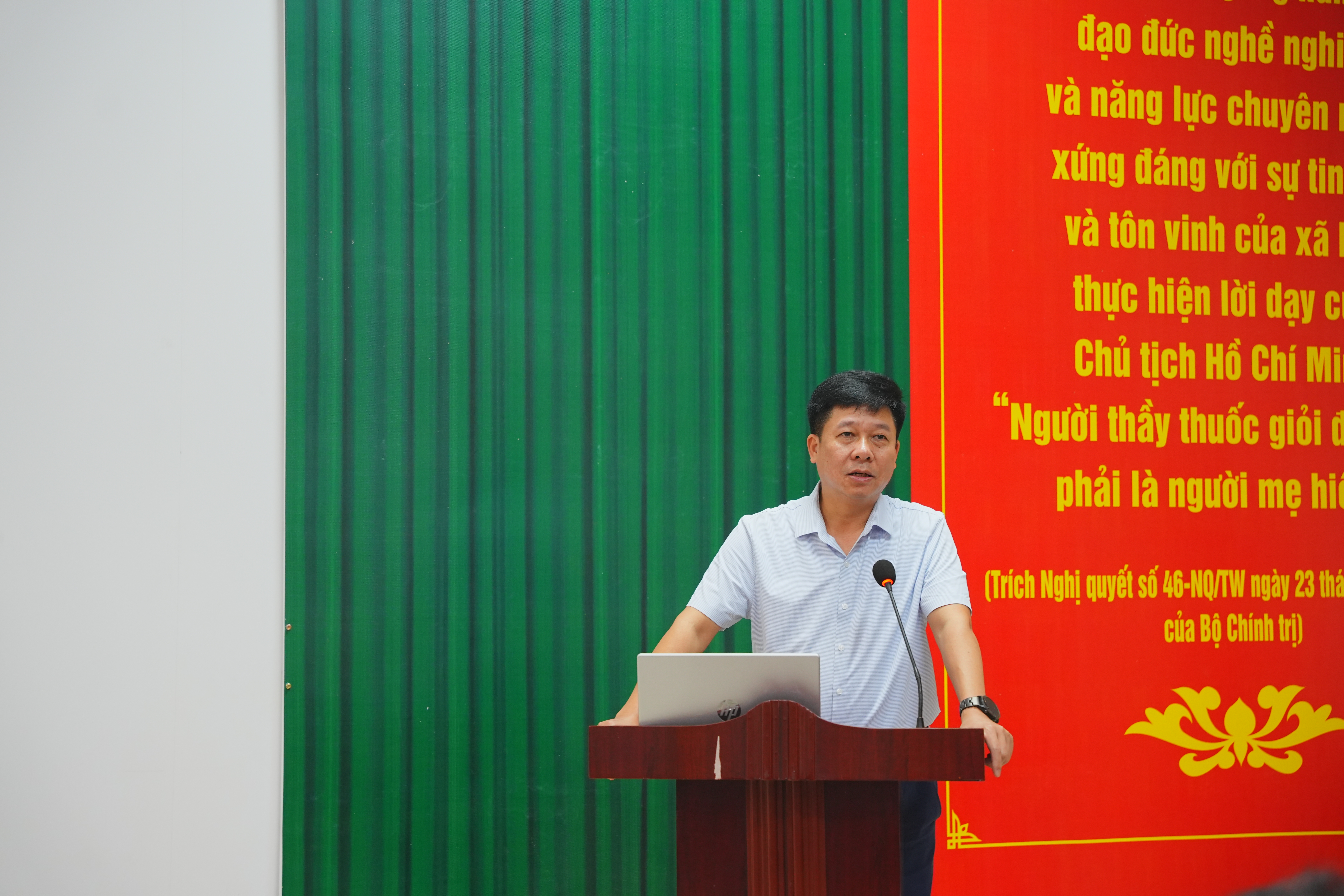 Đồng chí Trịnh Xuân Mạnh – Ủy viên Ban Chấp hành Đảng bộ Bệnh viện A, phụ trách Tuyên giáo và Dân vận, Báo cáo viên cấp Đảng bộ phường Quyết Thắng