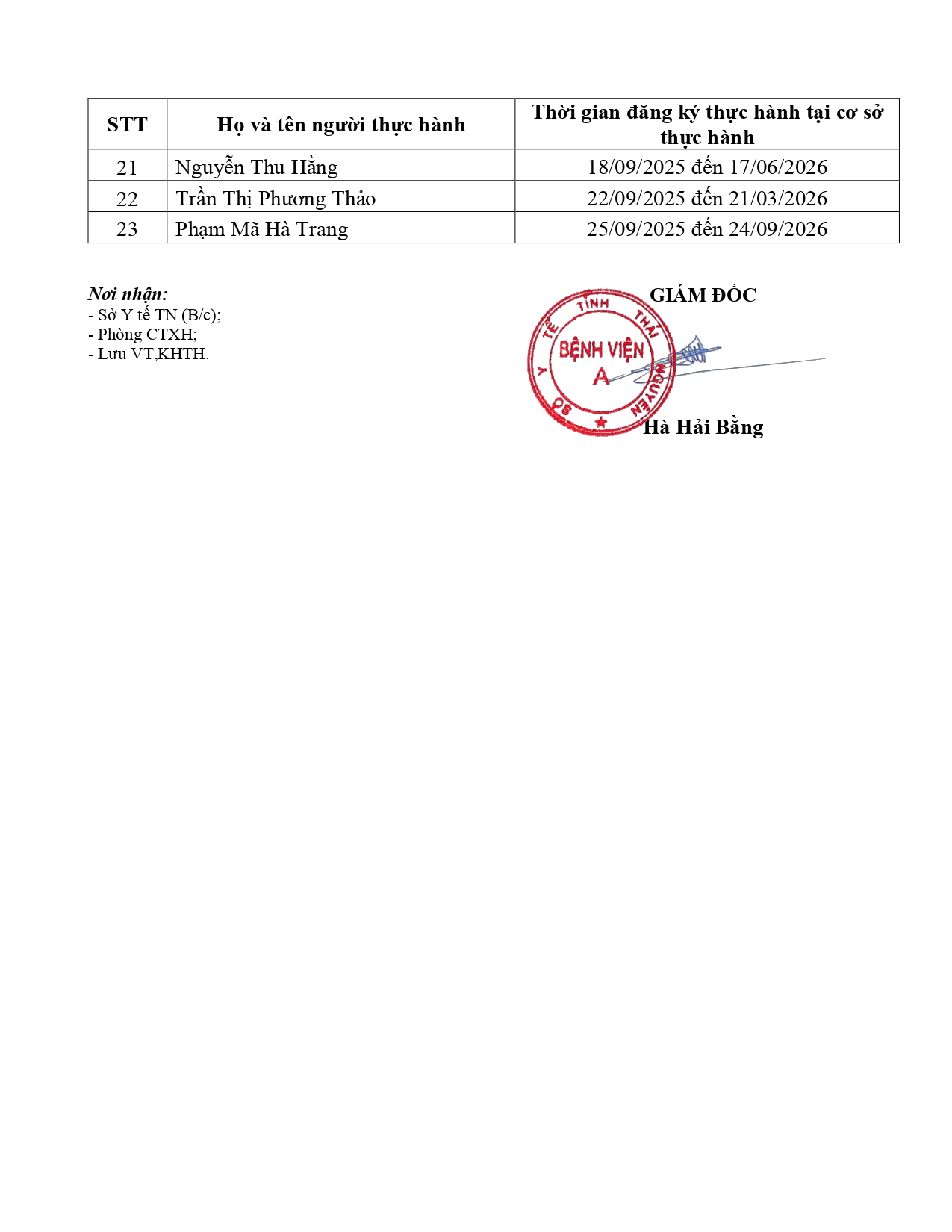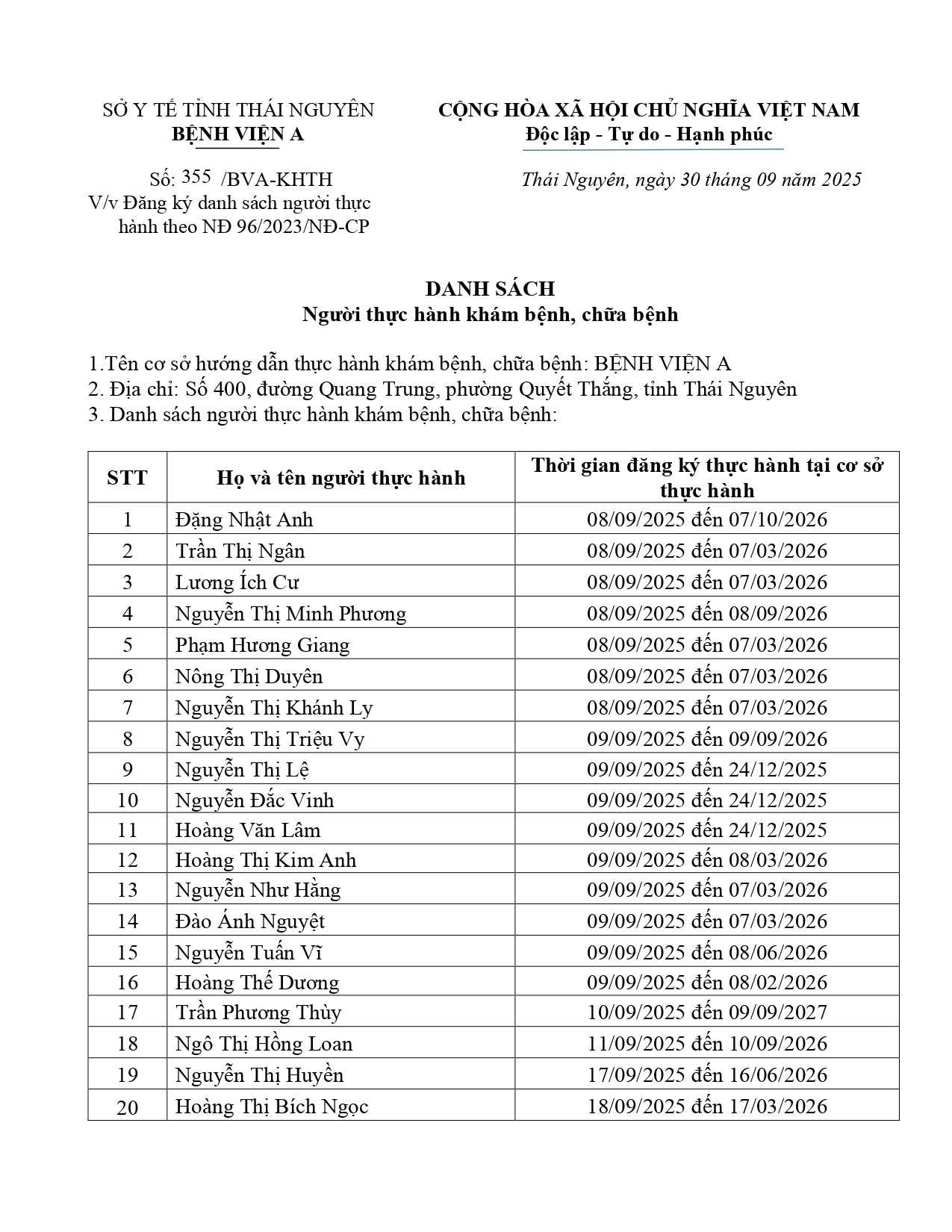 • Danh sách người thực hành khám bệnh, chữa bệnh ( 05/09/2025)