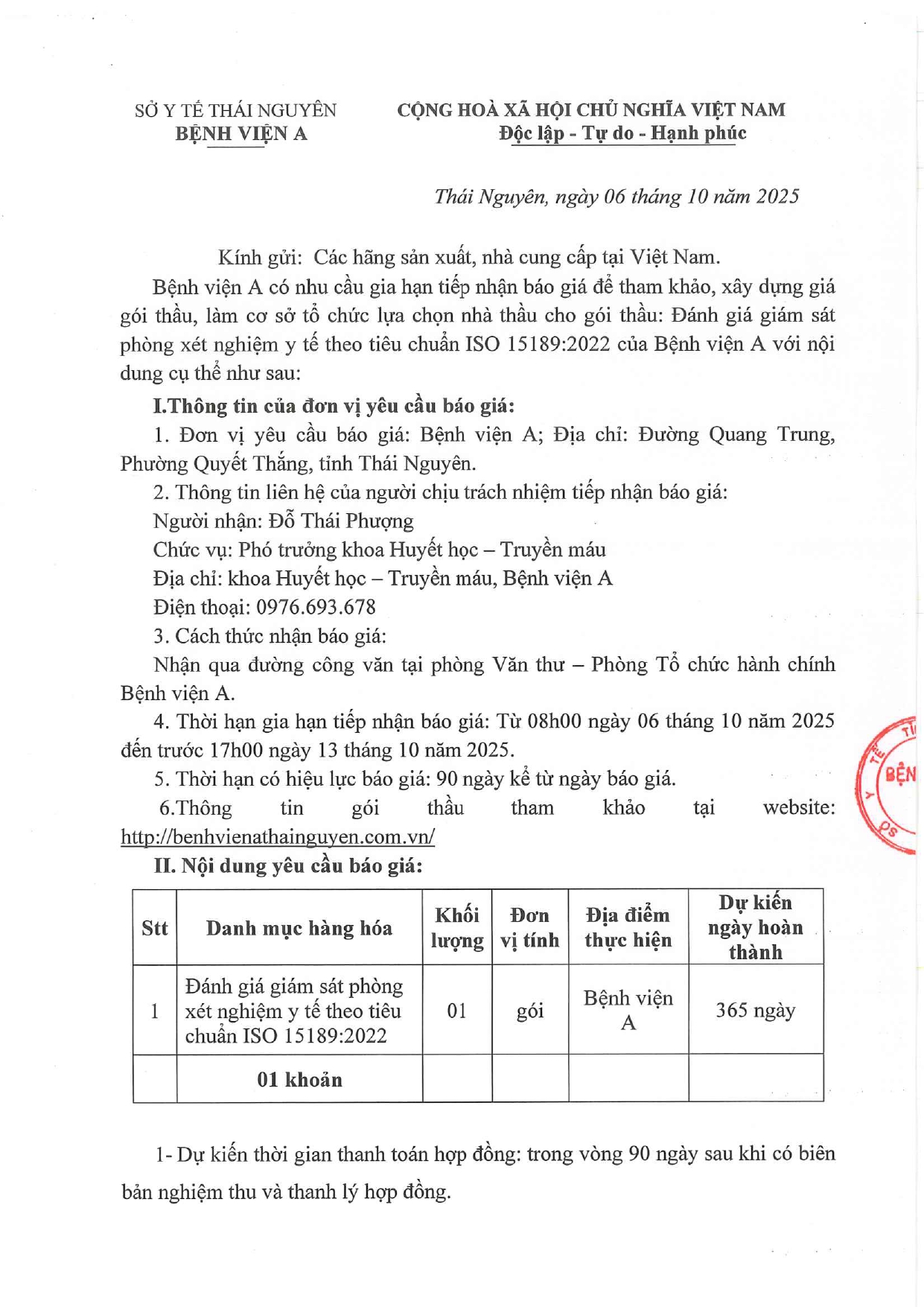 - Thông báo mời chào hàng gói thầu: Mua sắm thiết bị công nghệ thông tin phục vụ hoạt động của Bệnh viện A năm 2025 ( 26/09/2025)