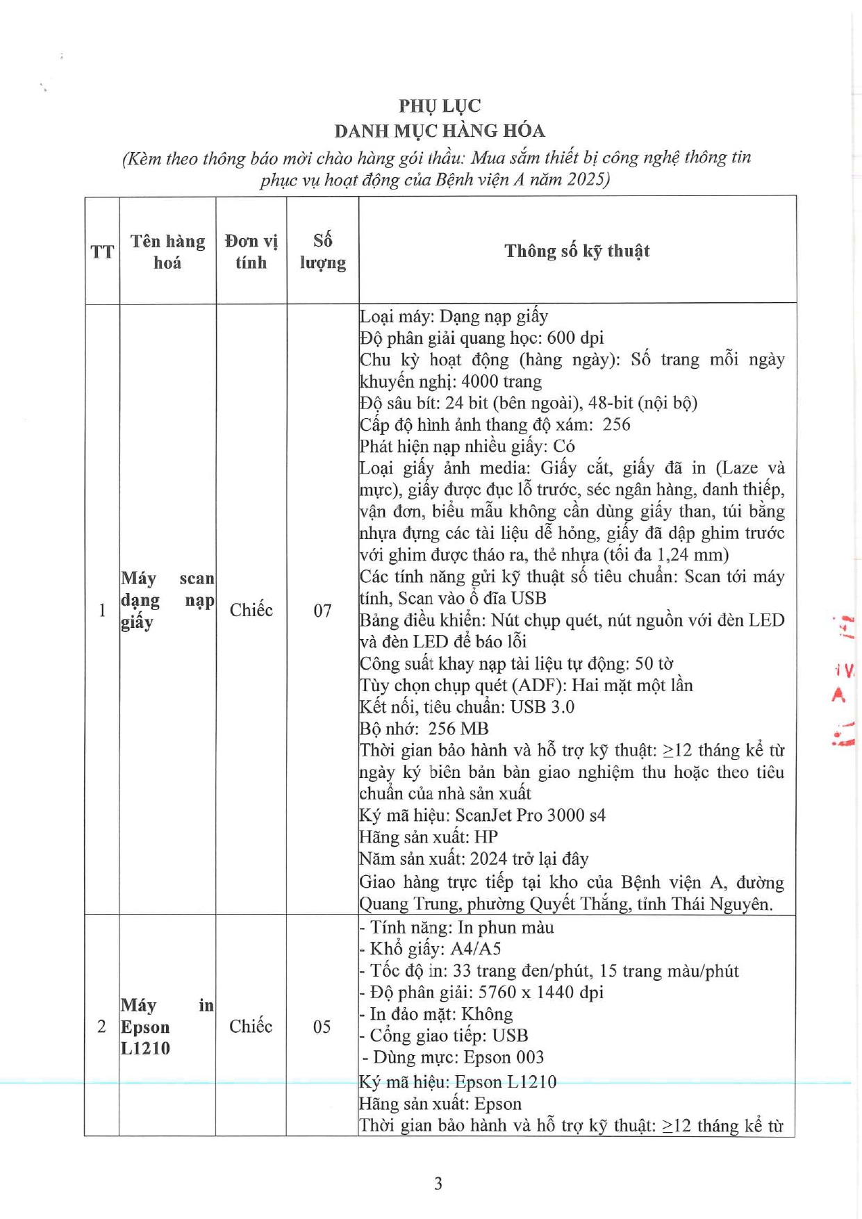 - Quyết định về việc phê duyệt kế hoạch lựa chọn nhà thầu dự toán mua sắm cho gói thầu: Mua sắm khăn lau vuông, thảm lau chân, dây dù buộc bệnh án, chiếu cói và đồ dùng phục vụ bệnh nhân cho Bệnh viện A ( 03/10/2025)