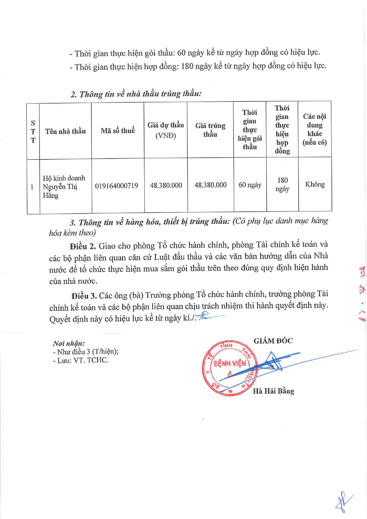 - Quyết định về việc phê duyệt kế hoạch lựa chọn nhà thầu của gói thầu: Mua sắm khăn lau vuông, thảm lau chân, dây dù buộc bệnh án, chiếu cói và đồ dùng phục vụ bệnh nhân cho Bệnh viện A ( 08/10/2025)