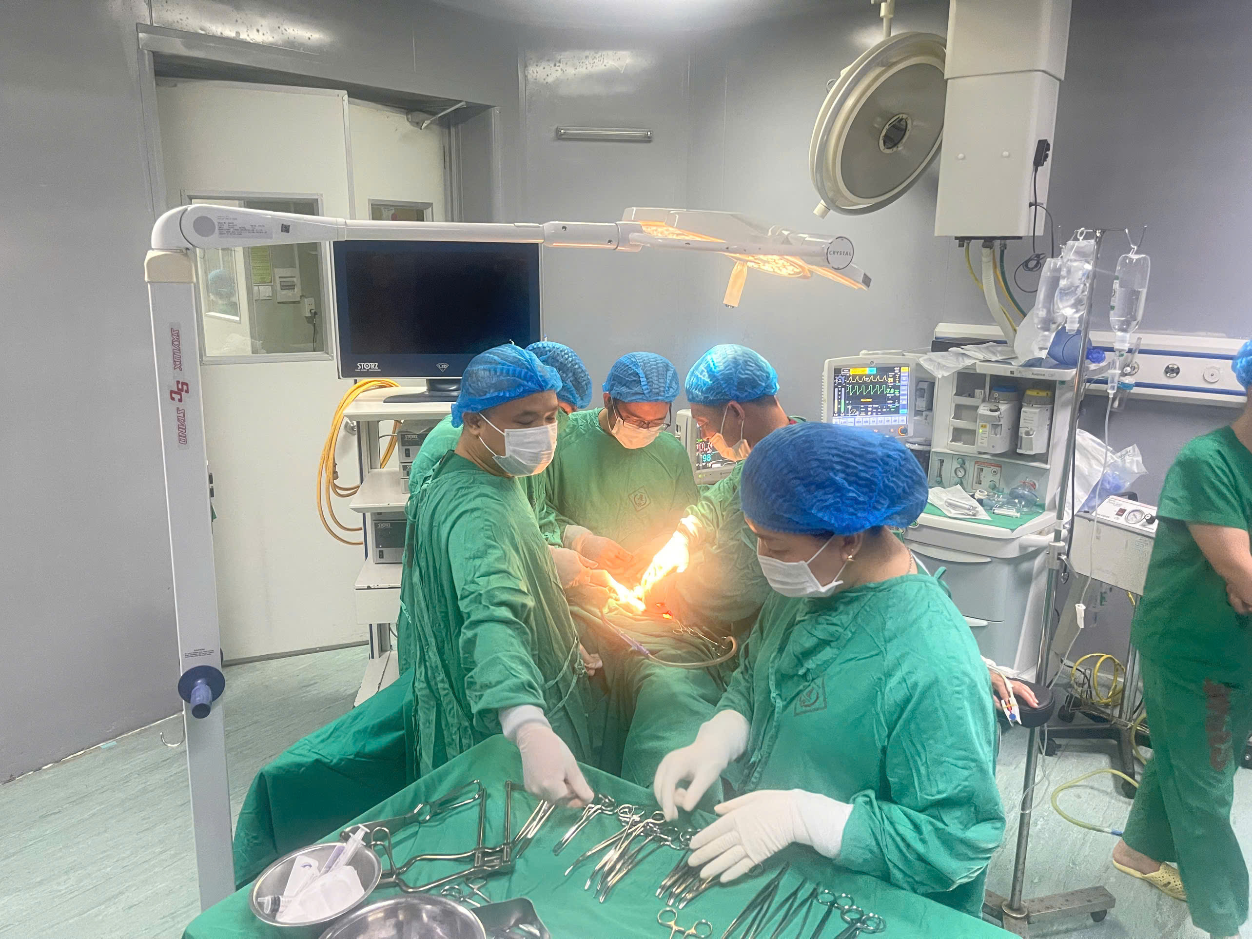 Ekip gồm các bác sĩ Khoa Phụ và Khoa Gây mê hồi sức Bệnh viện A thực hiện phẫu thuật cho bệnh nhân