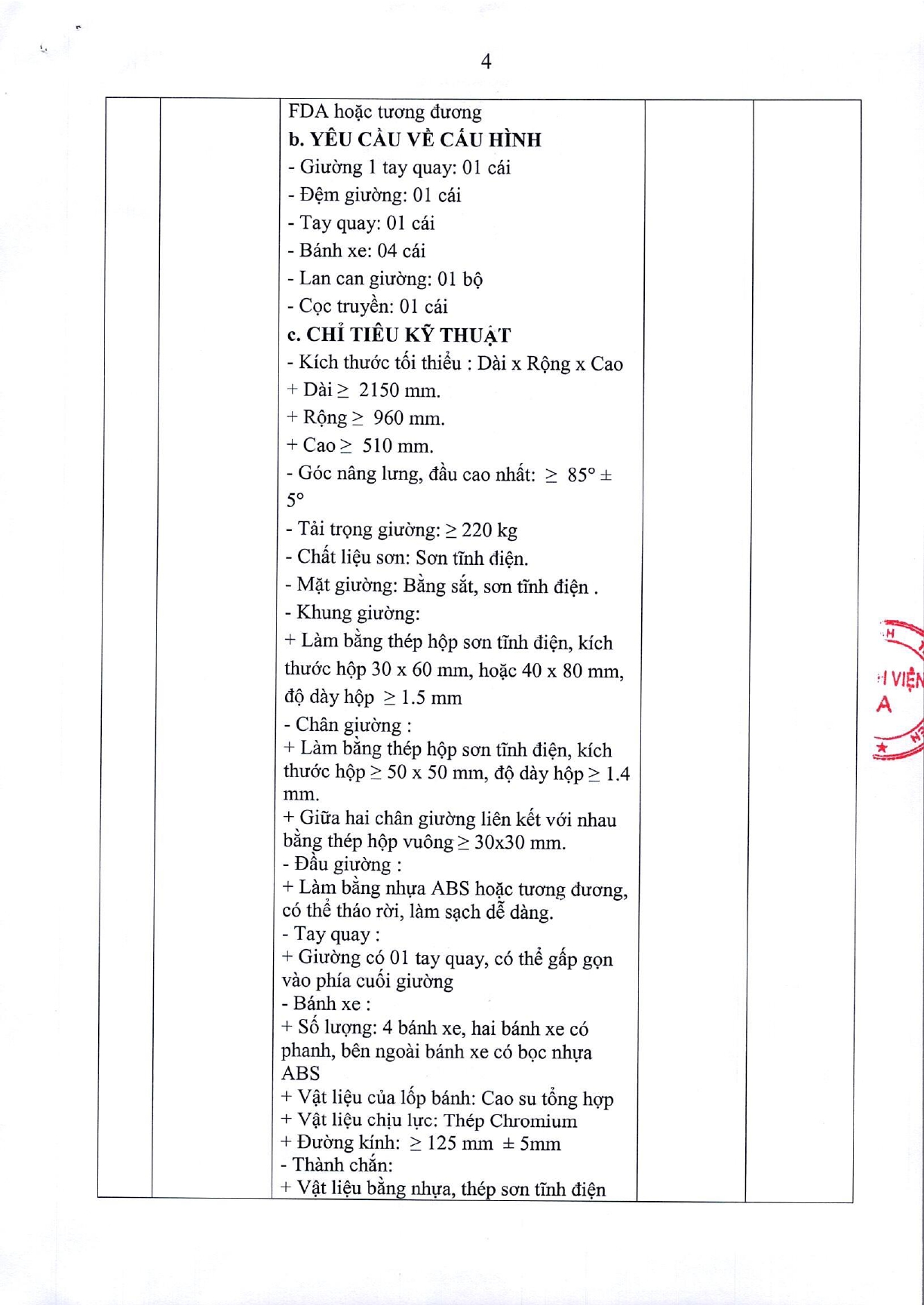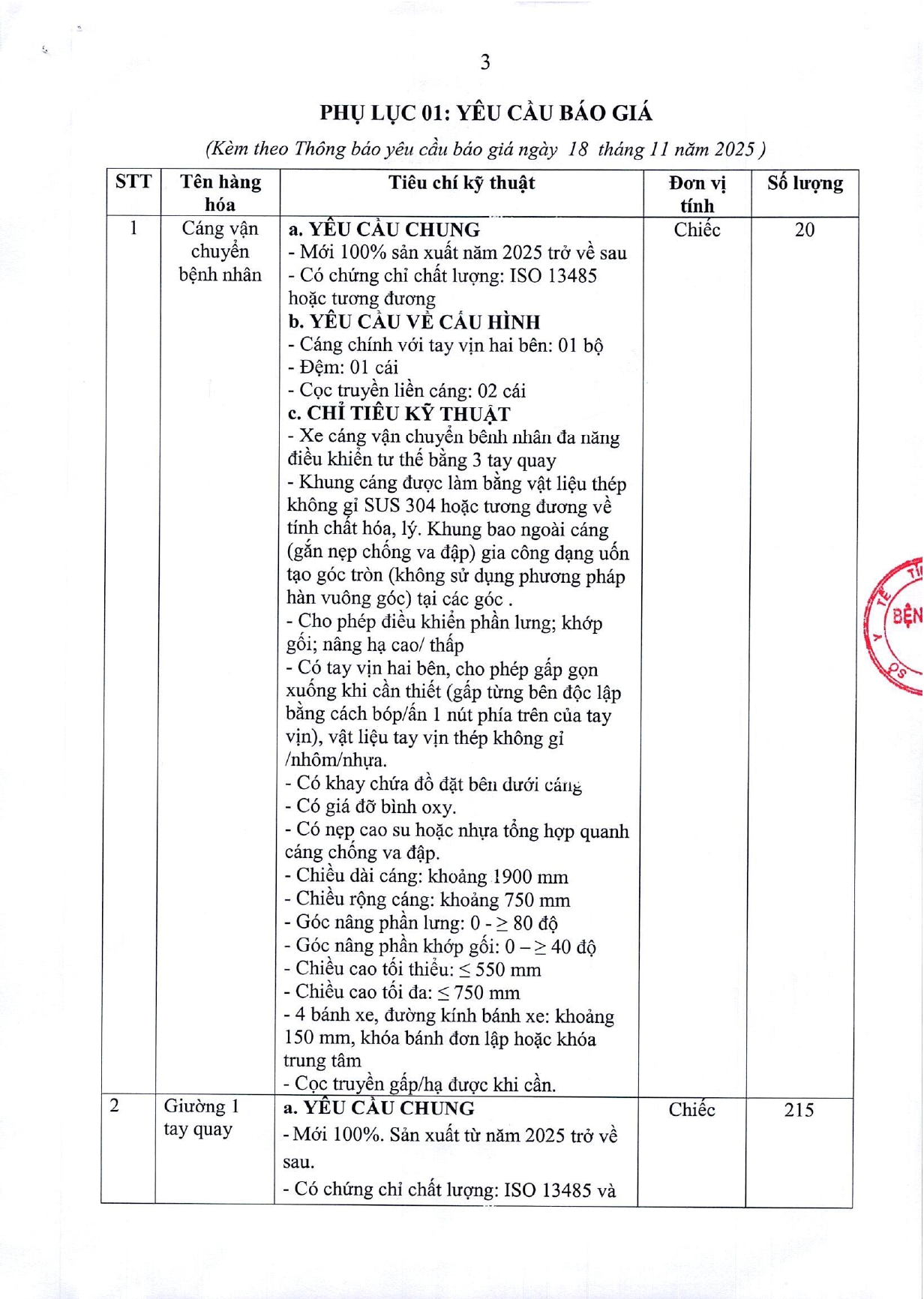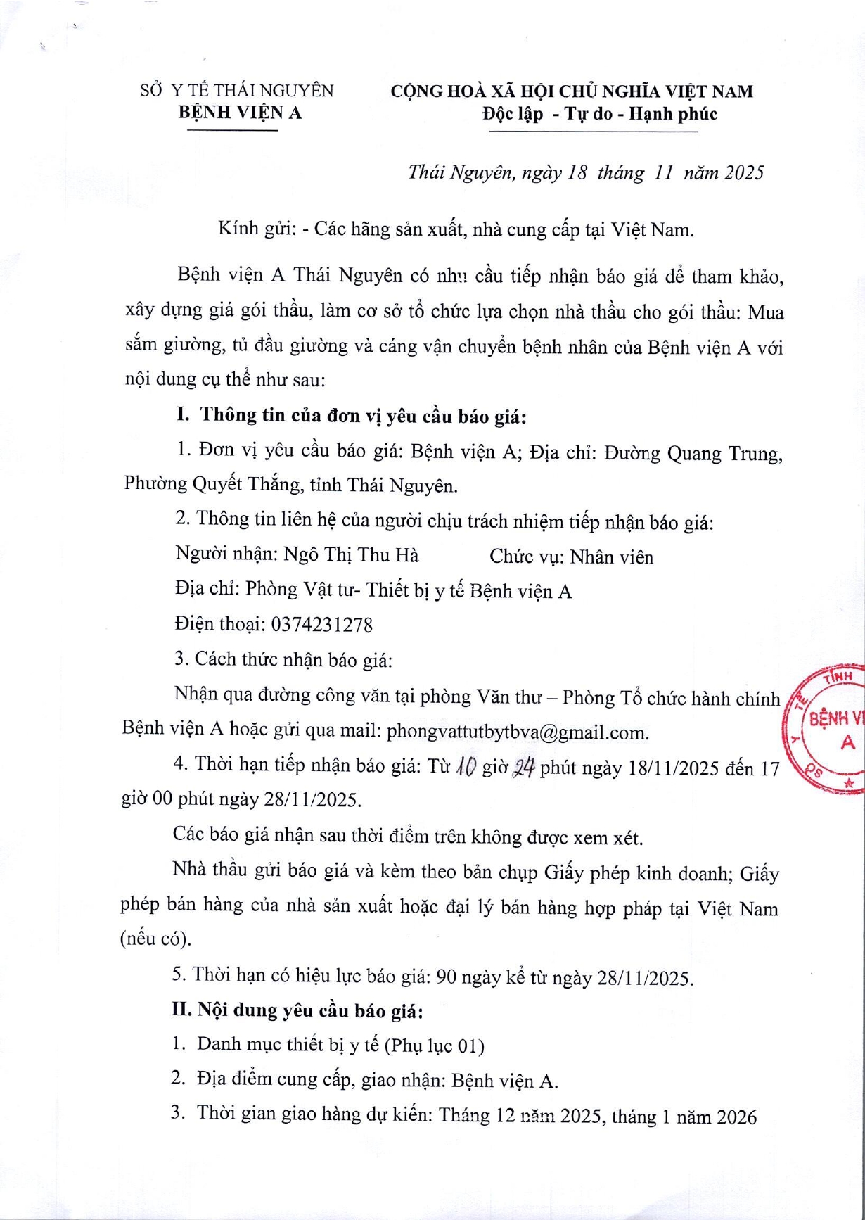 Thông báo mời chào giá gói thầu: Mua sắm giường, tủ đầu giường và cáng vận chuyển bệnh nhân của Bệnh viện A