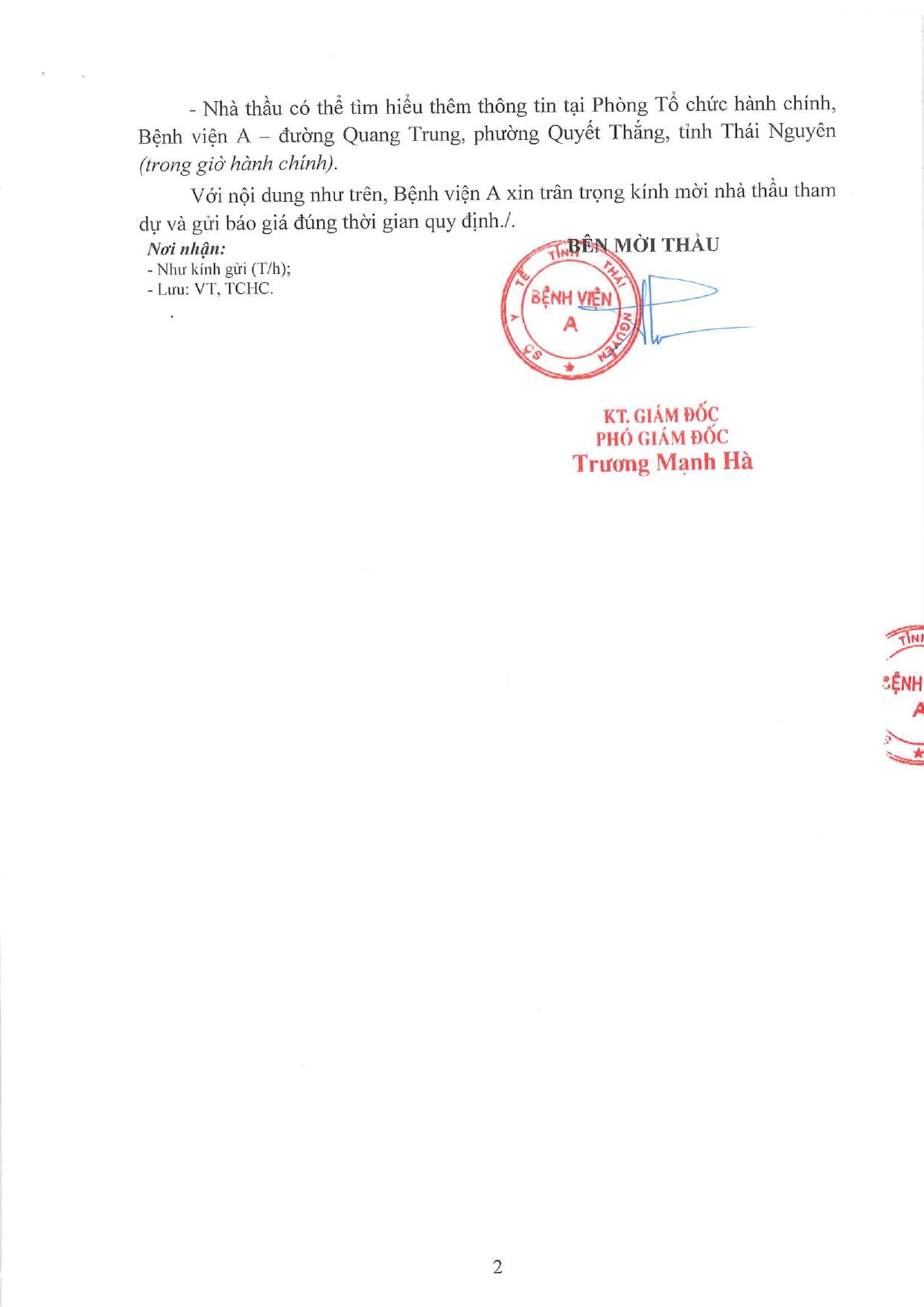 • Thông báo mời chào hàng gói thầu: Duy trì, bảo trì hệ thống cổng thông tin điện tử benhvienathainguyen.com.vn ( 10/12/2025)