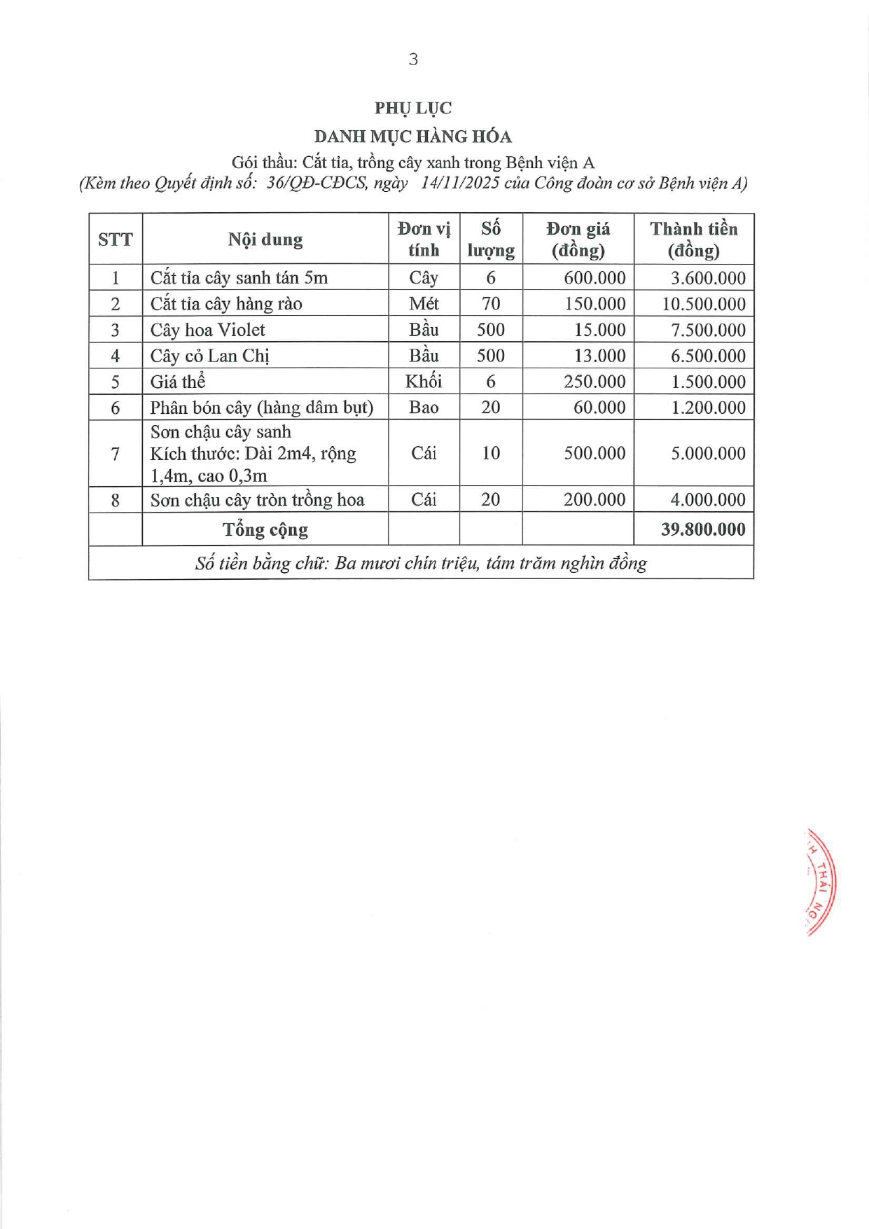 • Thông báo mời chào giá gói thầu: Cắt tỉa hàng cây cau vua phía trước khuôn viên Bệnh viện A ( 11/11/2025)