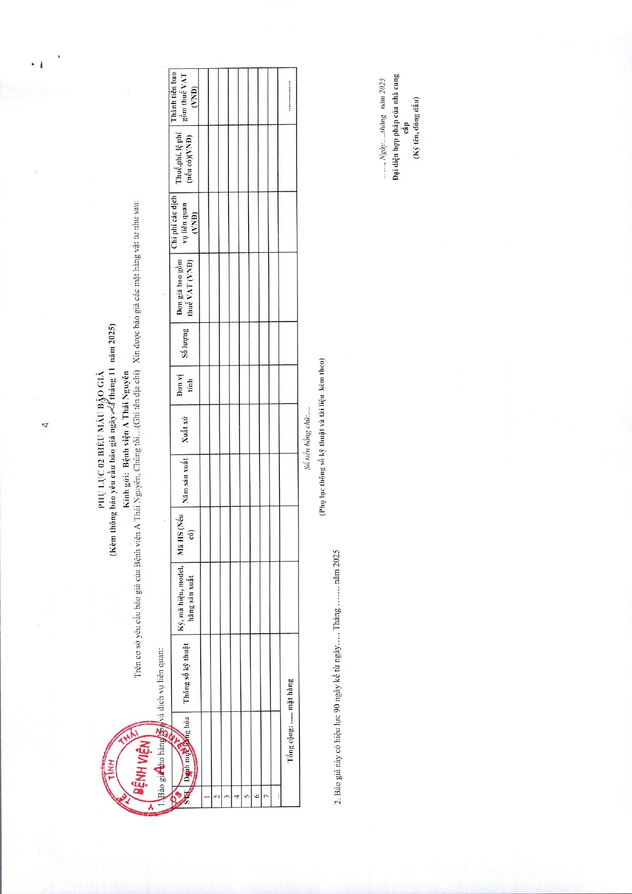 • Thông báo mời chào giá gói thầu: Mua sắm thiết bị tin học phục vụ công tác chuyên môn khám chữa bệnh tại Bệnh viện A năm 2025 ( 21/11/2025)