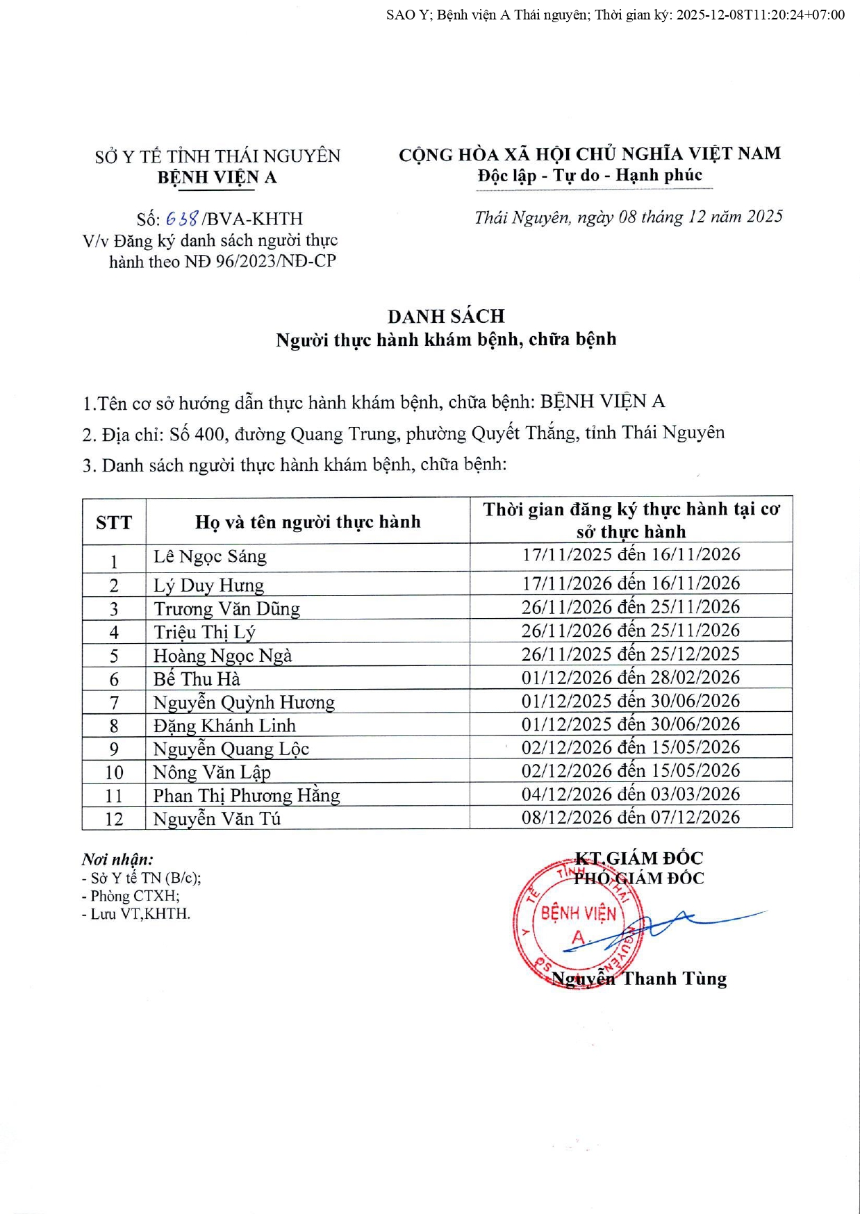 • Danh sách người thực hành khám bệnh, chữa bệnh ( 05/09/2025)