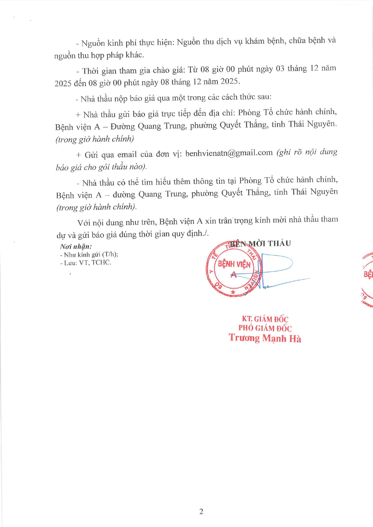 • Thông báo mời chào giá gói thầu: Mua khí y tế lần 1 năm 2025 của Bệnh viện A ( 28/11/2025)