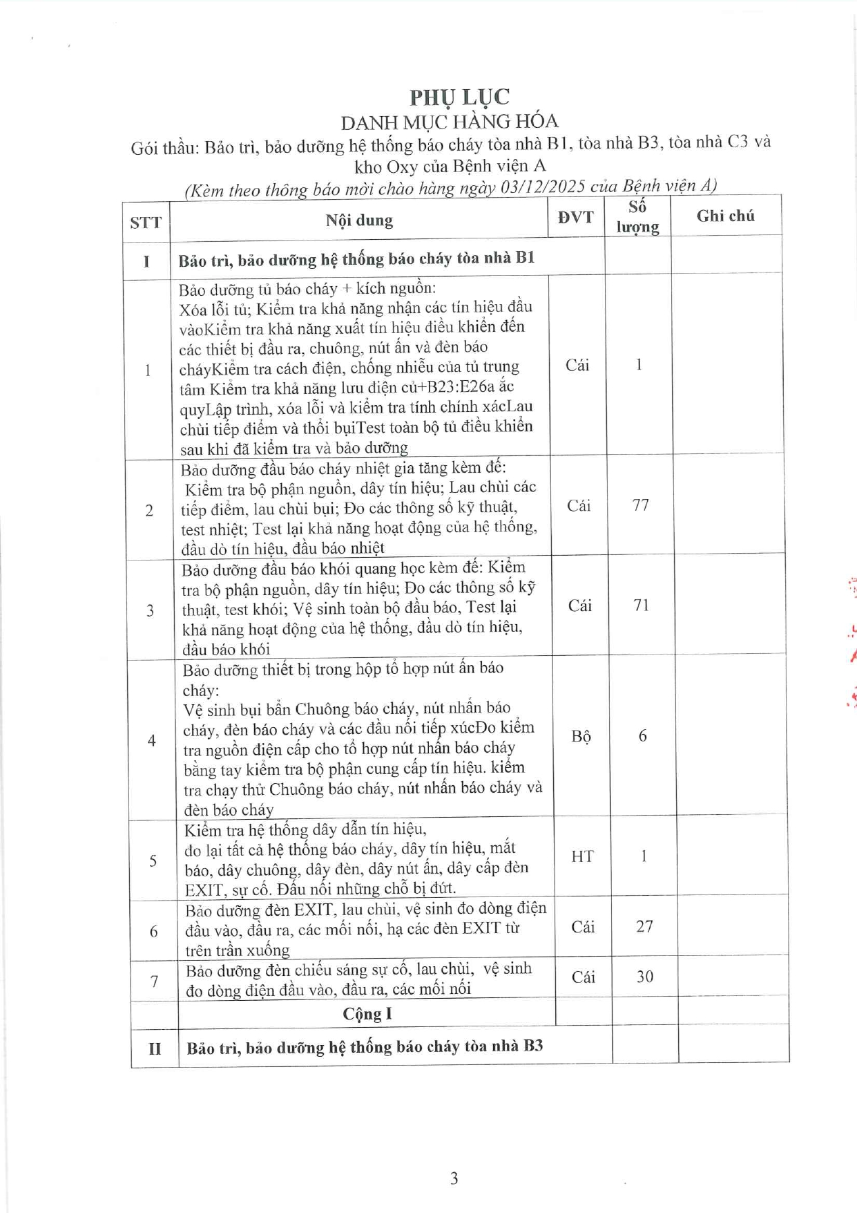 Thông báo mời chào giá gói thầu: Bảo trì, bảo dưỡng hệ thống báo cháy tòa nhà B1, tòa nhà B3, tòa nhà C3 và kho Oxy của Bệnh viện A
