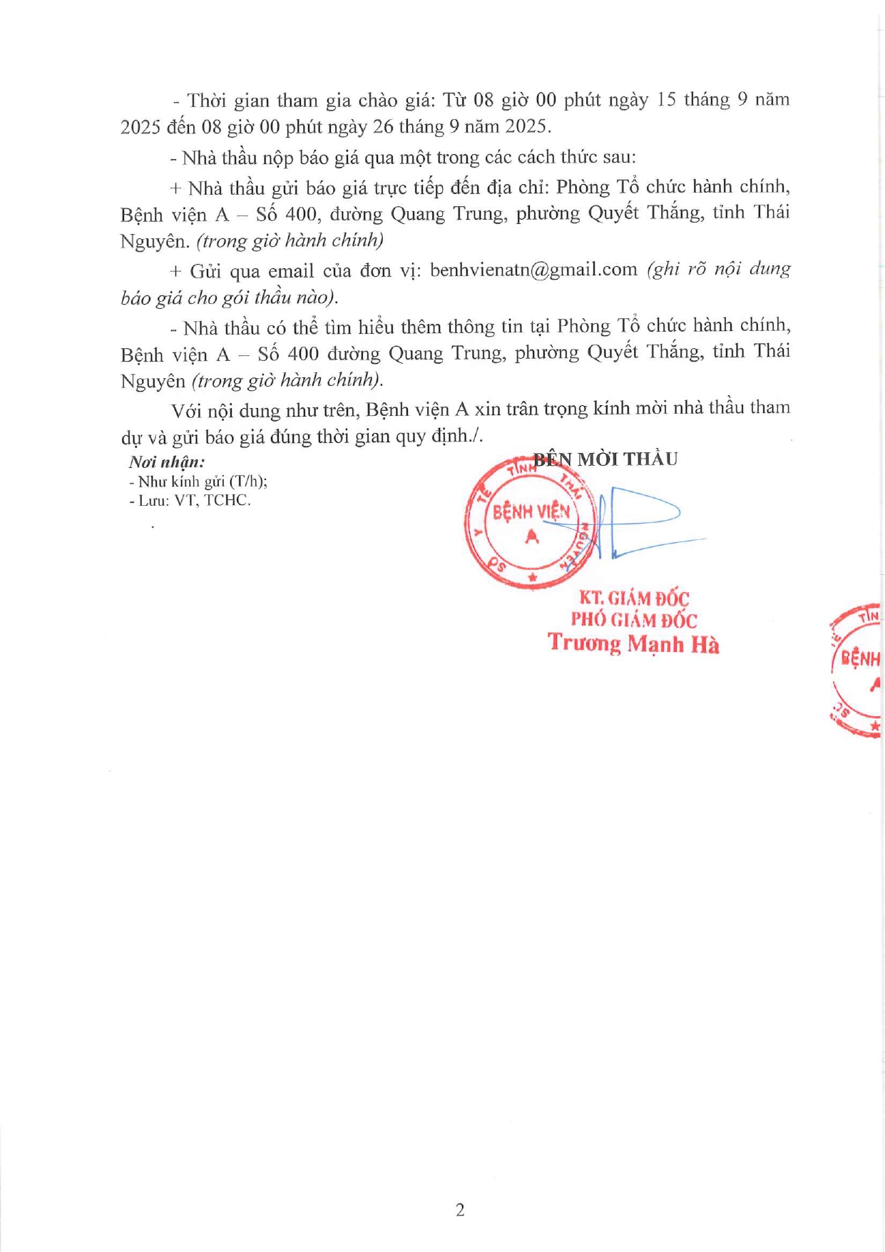 • Thông báo mời chào hàng gói thầu: Mua thuốc Generic bổ sung lần 2 năm 2025 của Bệnh viện A ( 10/12/2025)