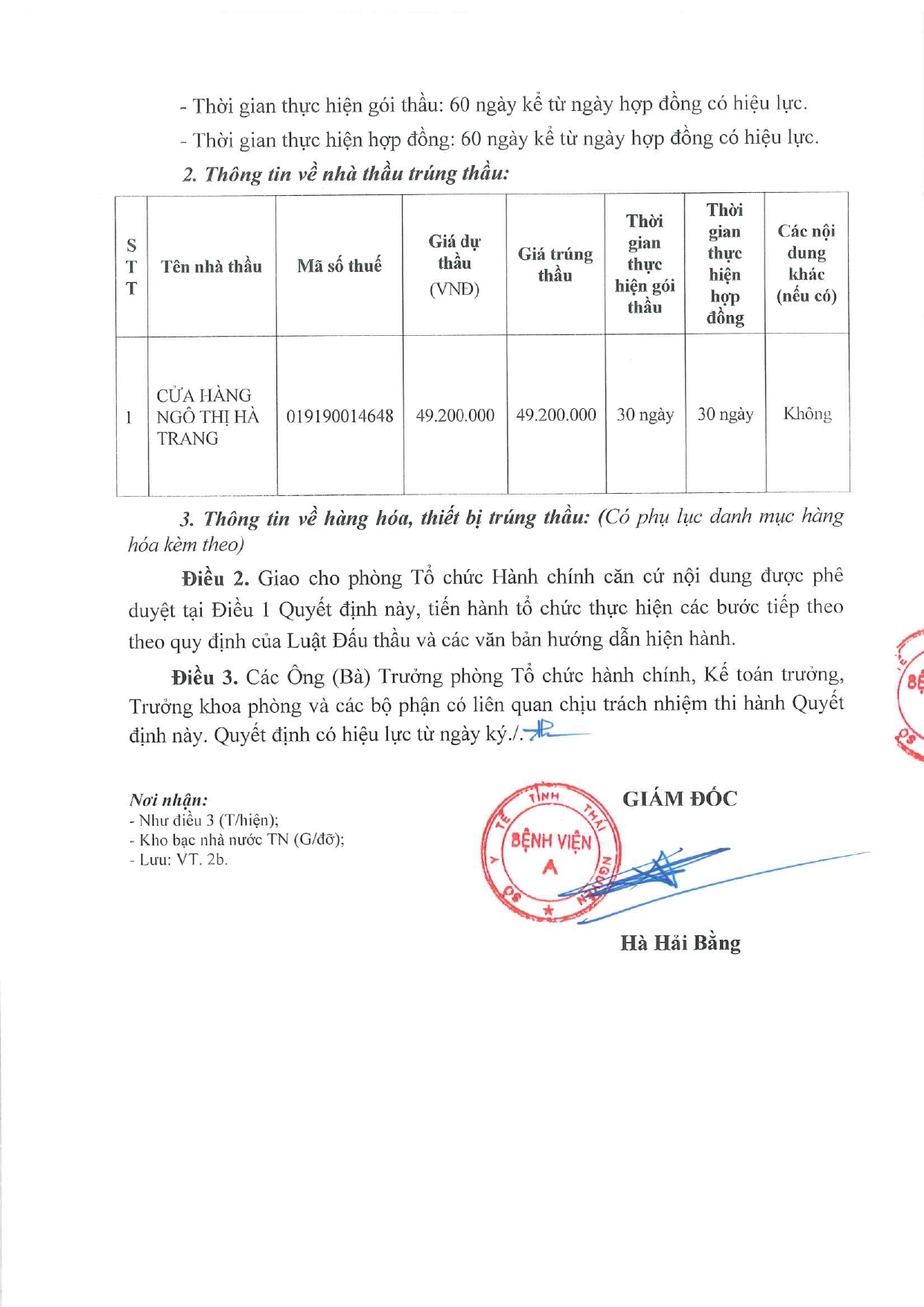 • Quyết định về việc phê duyệt kết quả lựa chọn nhà thầu gói thầu: Mua sắm đèn led panel P08 cho Bệnh viện A ( 03/12/2025)
