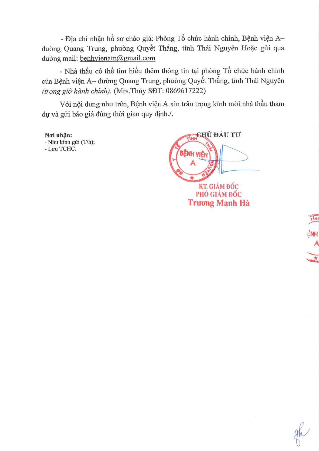 • Thông báo mời chào hàng gói thầu: Duy trì, bảo trì hệ thống cổng thông tin điện tử benhvienathainguyen.com.vn ( 10/12/2025)