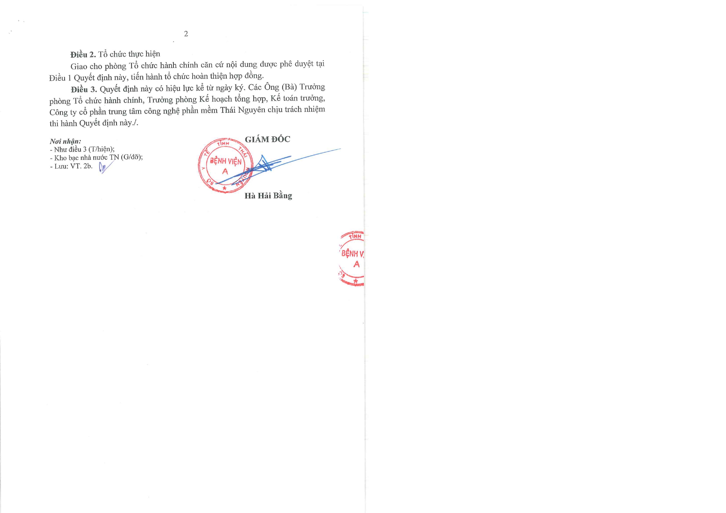 Quyết định về việc phê duyệt kết quả lựa chọn nhà thầu gói thầu: Duy trì, bảo vệ hệ thống cổng thông tin điện tử benhvienathainguyen.com.vn Bệnh viện A