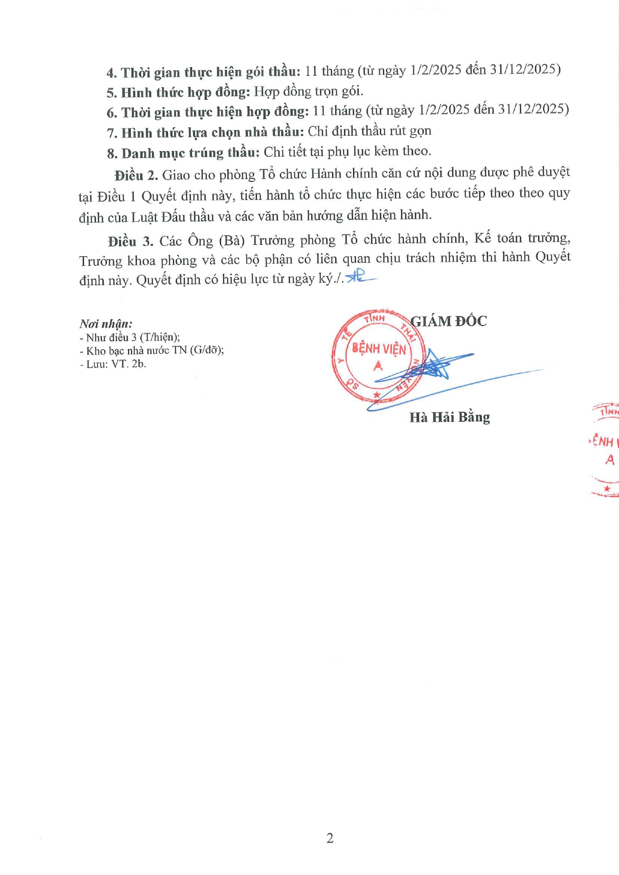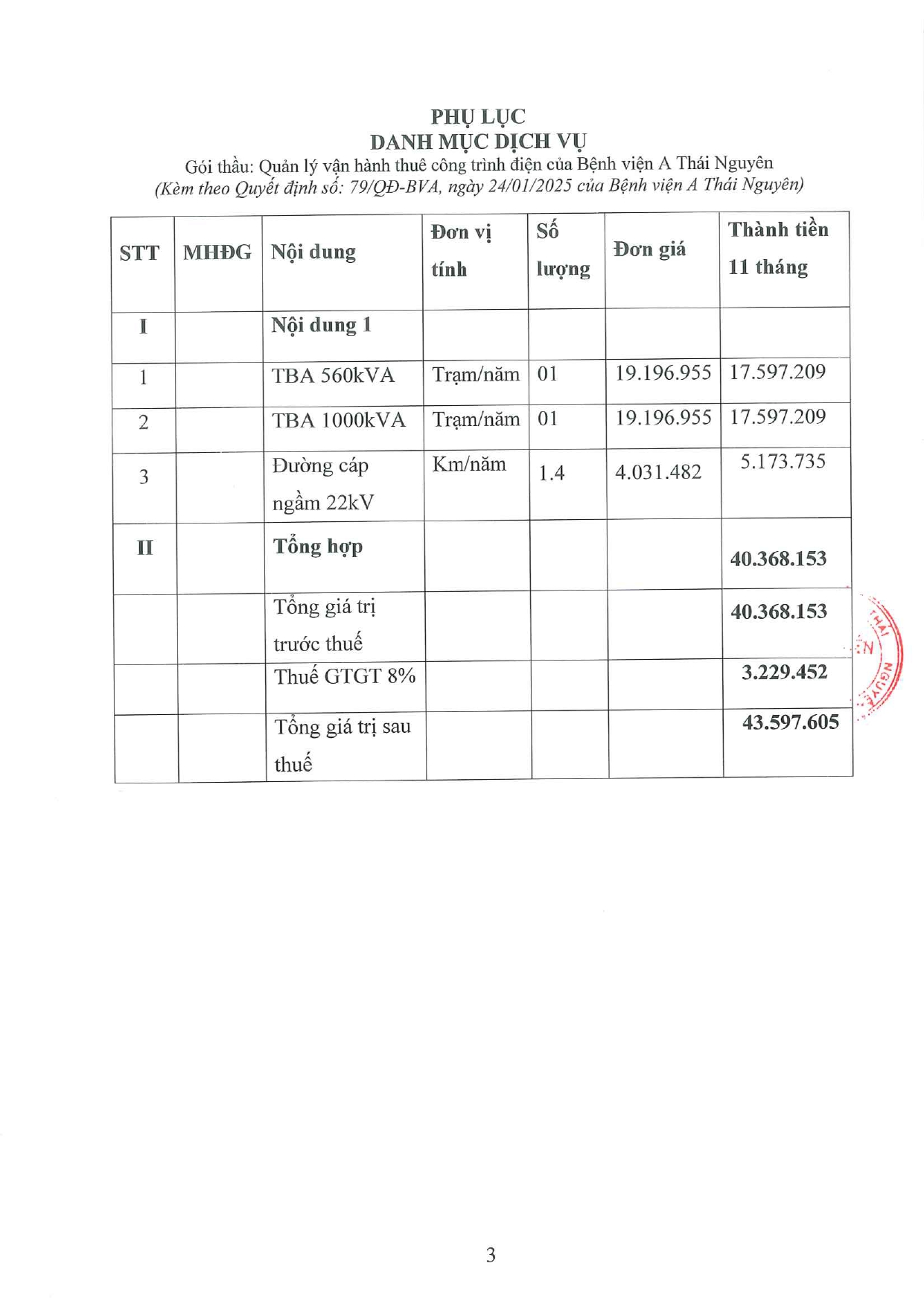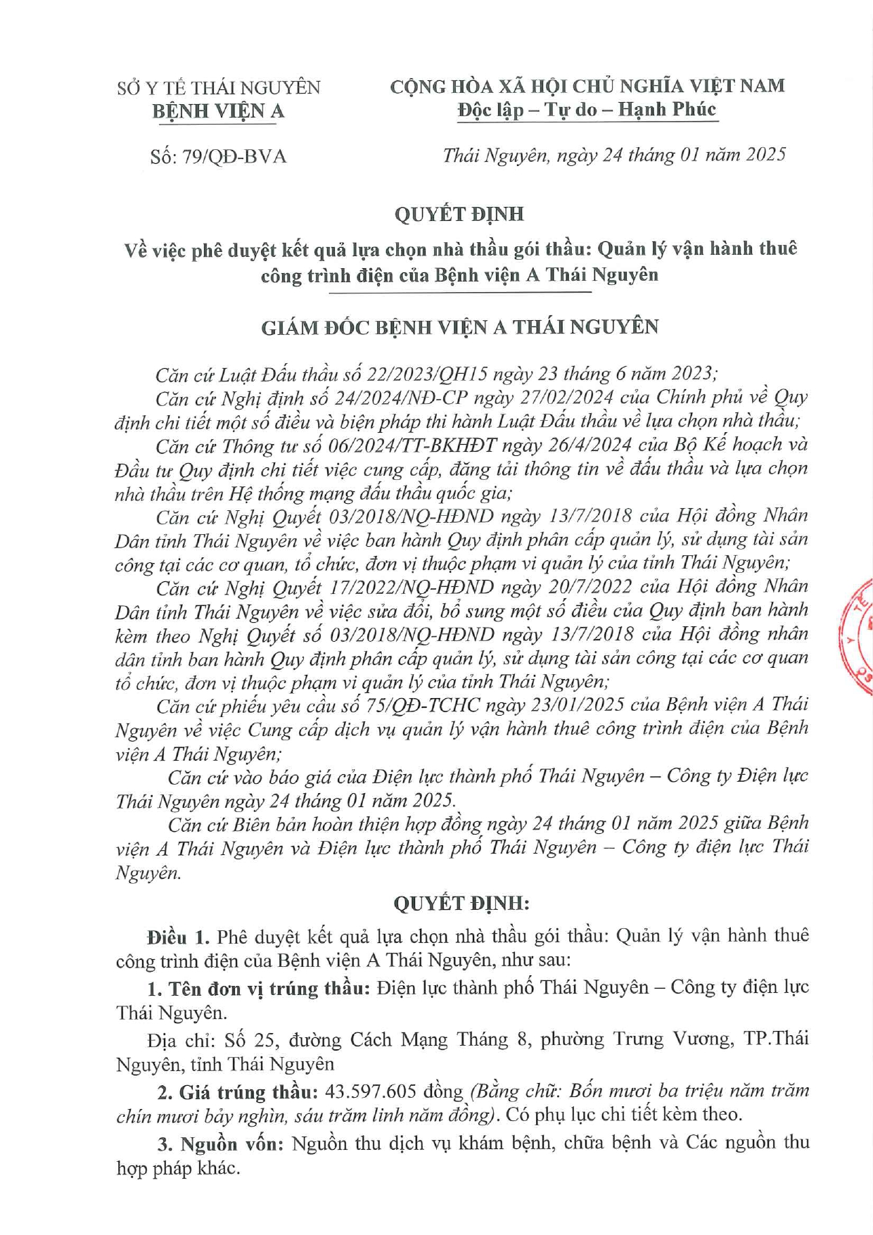 Quyết định về việc phê duyệt kết quả lựa chọn nhà thầu gói thầu: Quản lý vận hành thuê công trình điện của Bệnh viện A