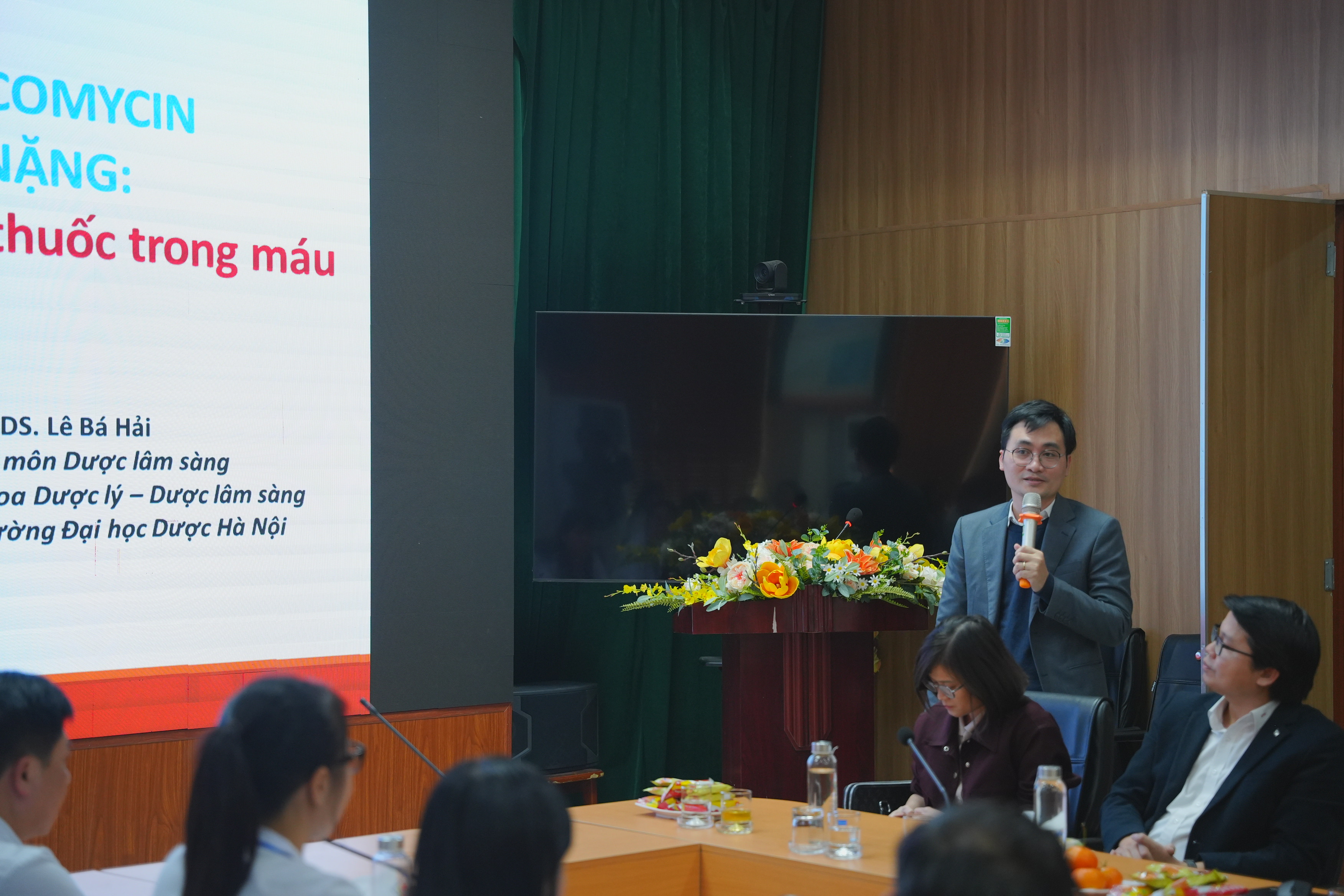 TS. DS. Lê Bá Hải, Giảng viên Bộ môn Dược lâm sàng trình bày nội dung “Cá thể hoá liều vancomycin trên bệnh nhân nặng: Vai trò của giám sát nồng độ thuốc”