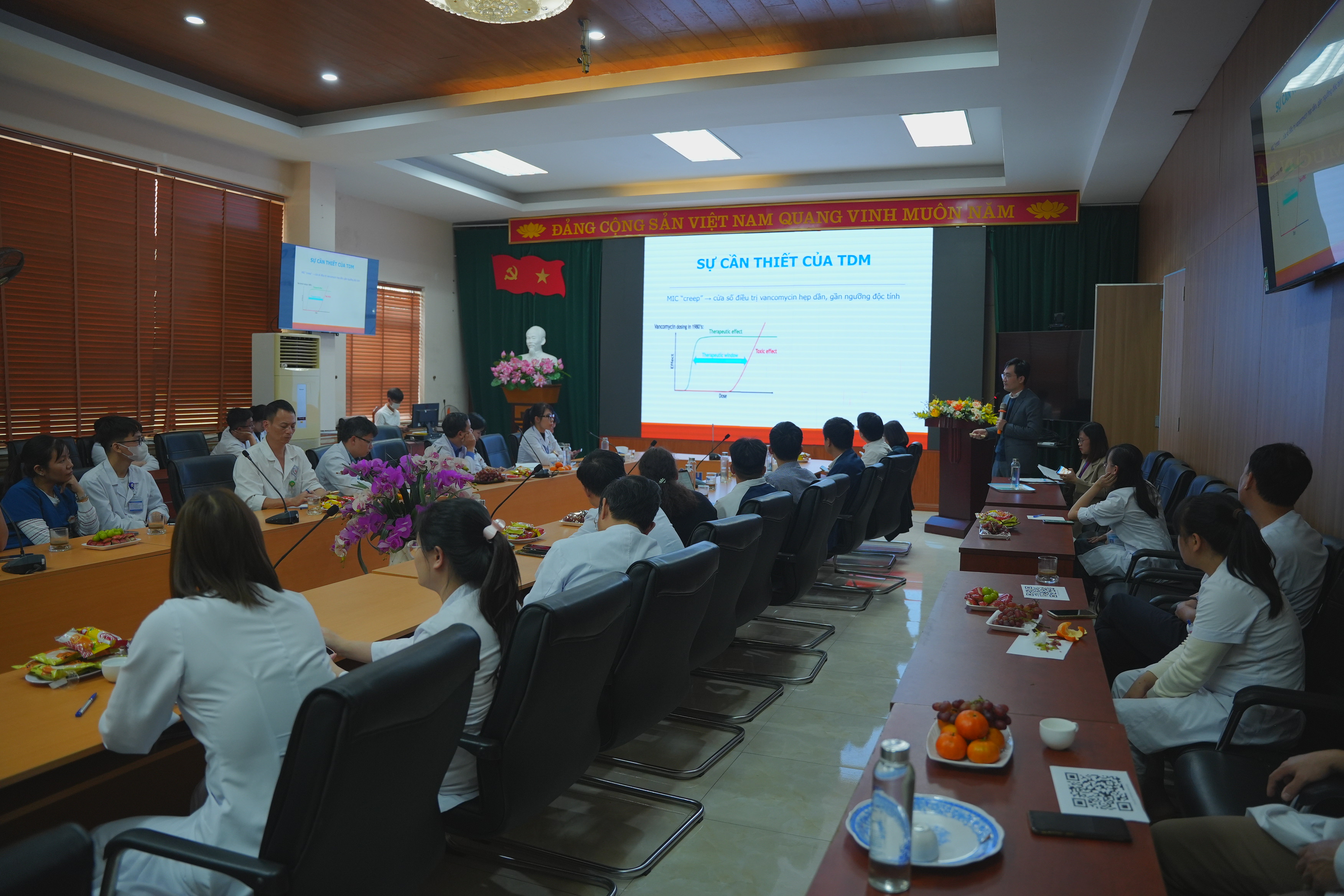 Tiếp sau bài chia sẻ của PGS.TS. Nguyễn Thành Hải là báo cáo “Cá thể hoá liều vancomycin trên bệnh nhân nặng: Vai trò của giám sát nồng độ thuốc” do TS. DS. Lê Bá Hải, Giảng viên Bộ môn Dược lâm sàng, Trường Đại học Dược Hà Nội trình bày.