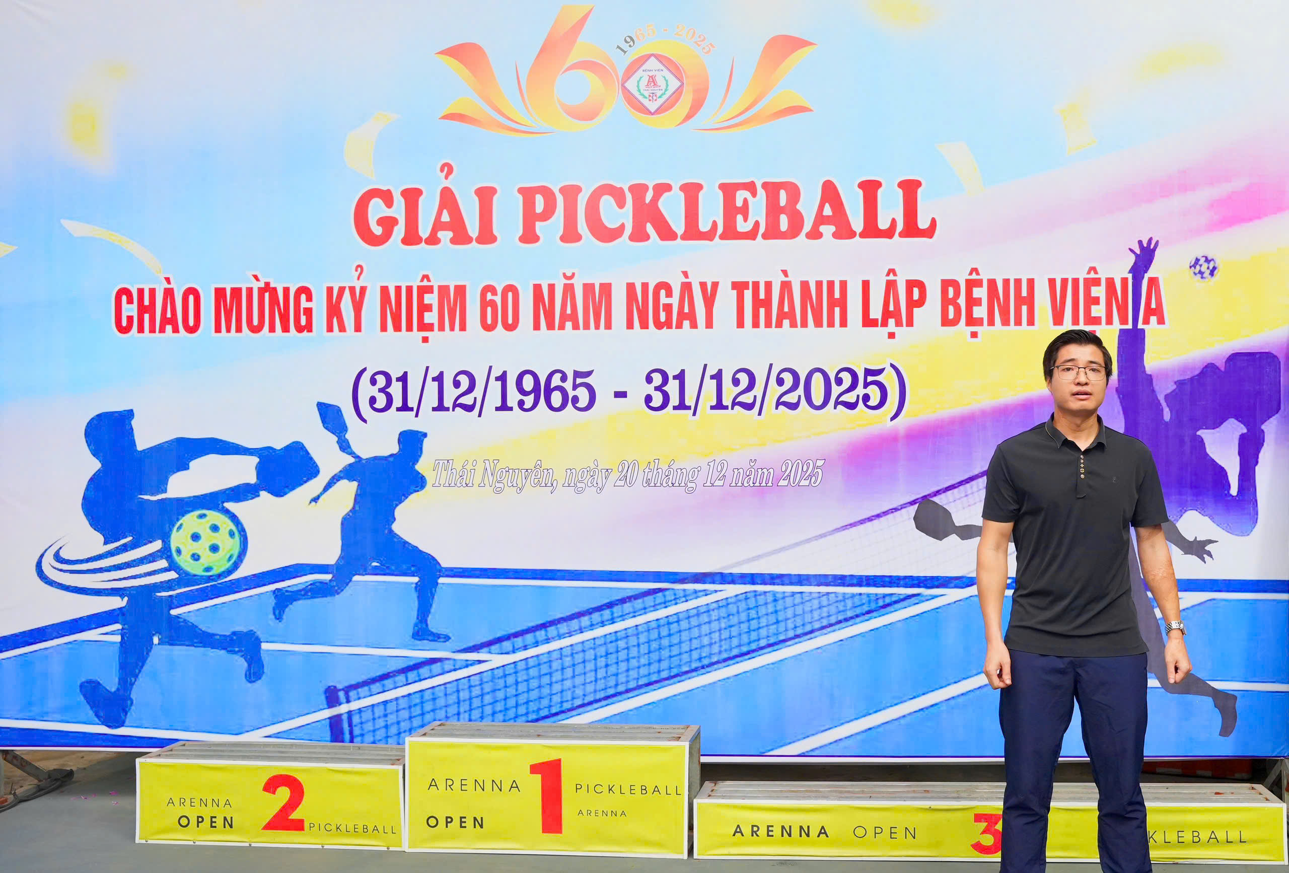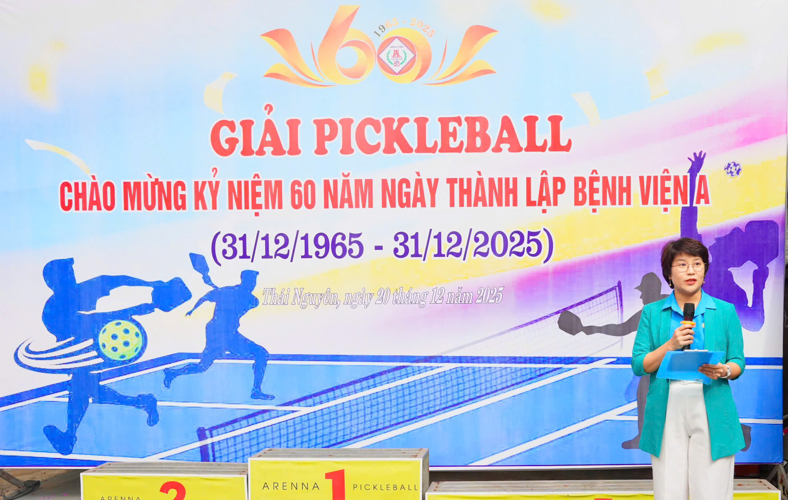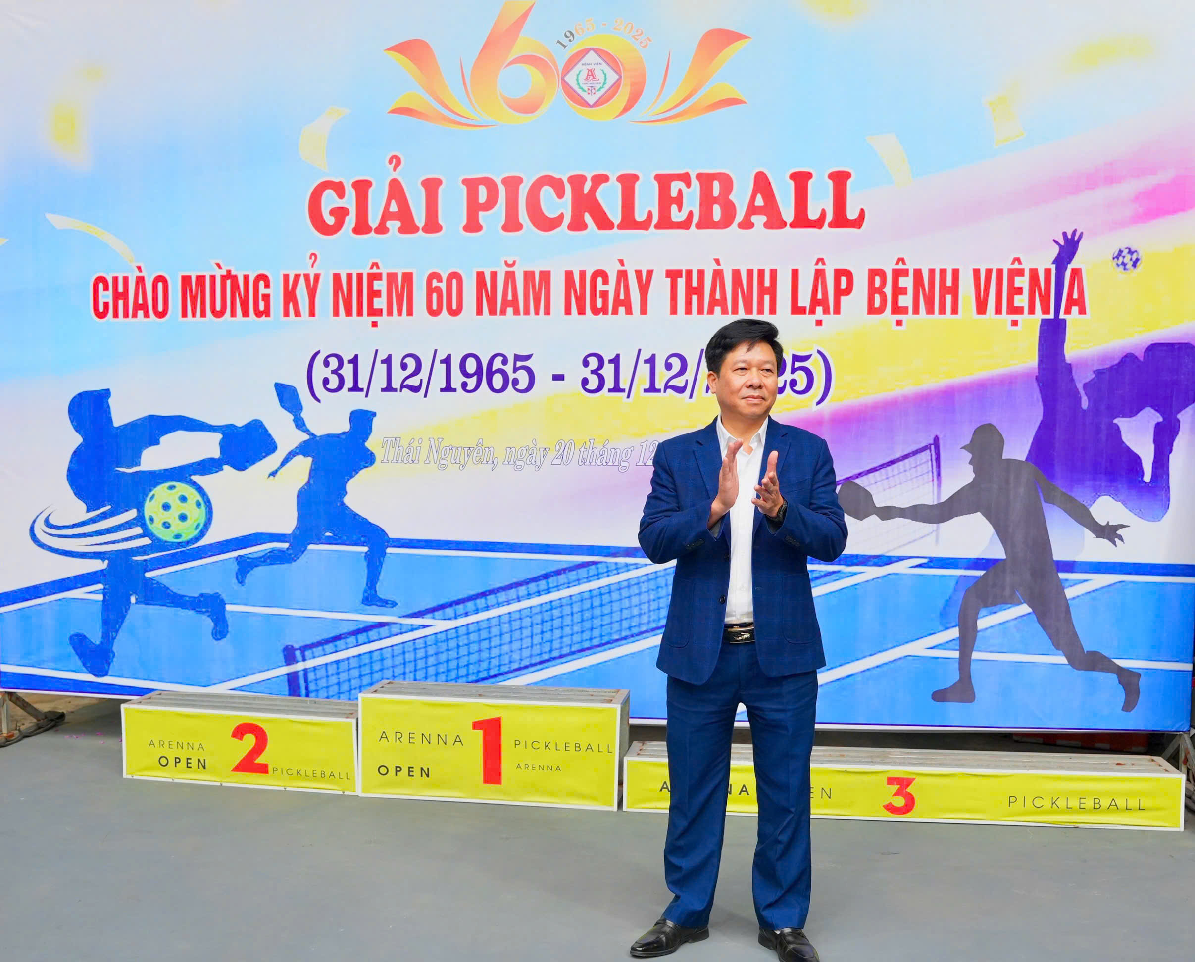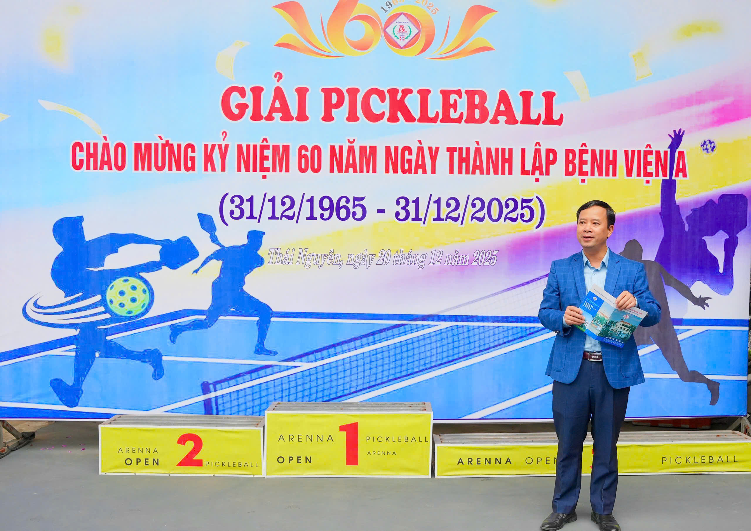 Ngày 20/12/2025, Bệnh viện A tổ chức Giải Pickleball chào mừng kỷ niệm 60 năm thành lập Bệnh viện (31/12/1965-31/12/2025). TTƯT. BSCKII. Hà Hải Bằng – Bí thư Đảng ủy, Giám đốc Bệnh viện dự phát biểu khai mạc giải.