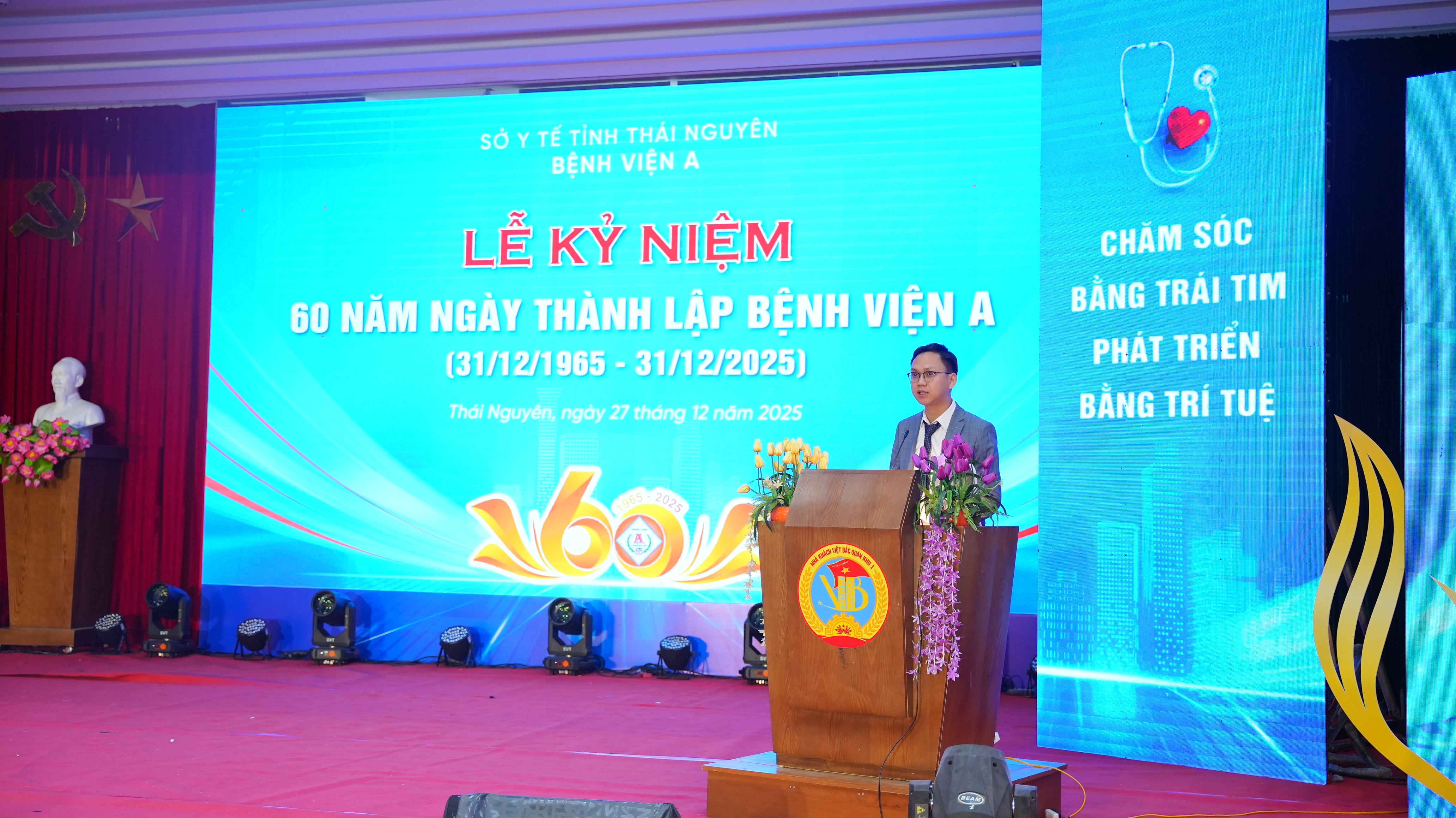 Sáng 27/12, Bệnh viện A long trọng tổ chức Lễ kỷ niệm 60 năm ngày thành lập (31/12/1965 – 31/12/2025). Đây là sự kiện có ý nghĩa quan trọng, đánh dấu chặng đường 60 năm xây dựng, phát triển và trưởng thành của Bệnh viện A trong sự nghiệp bảo vệ, chăm sóc và nâng cao sức khỏe nhân dân.