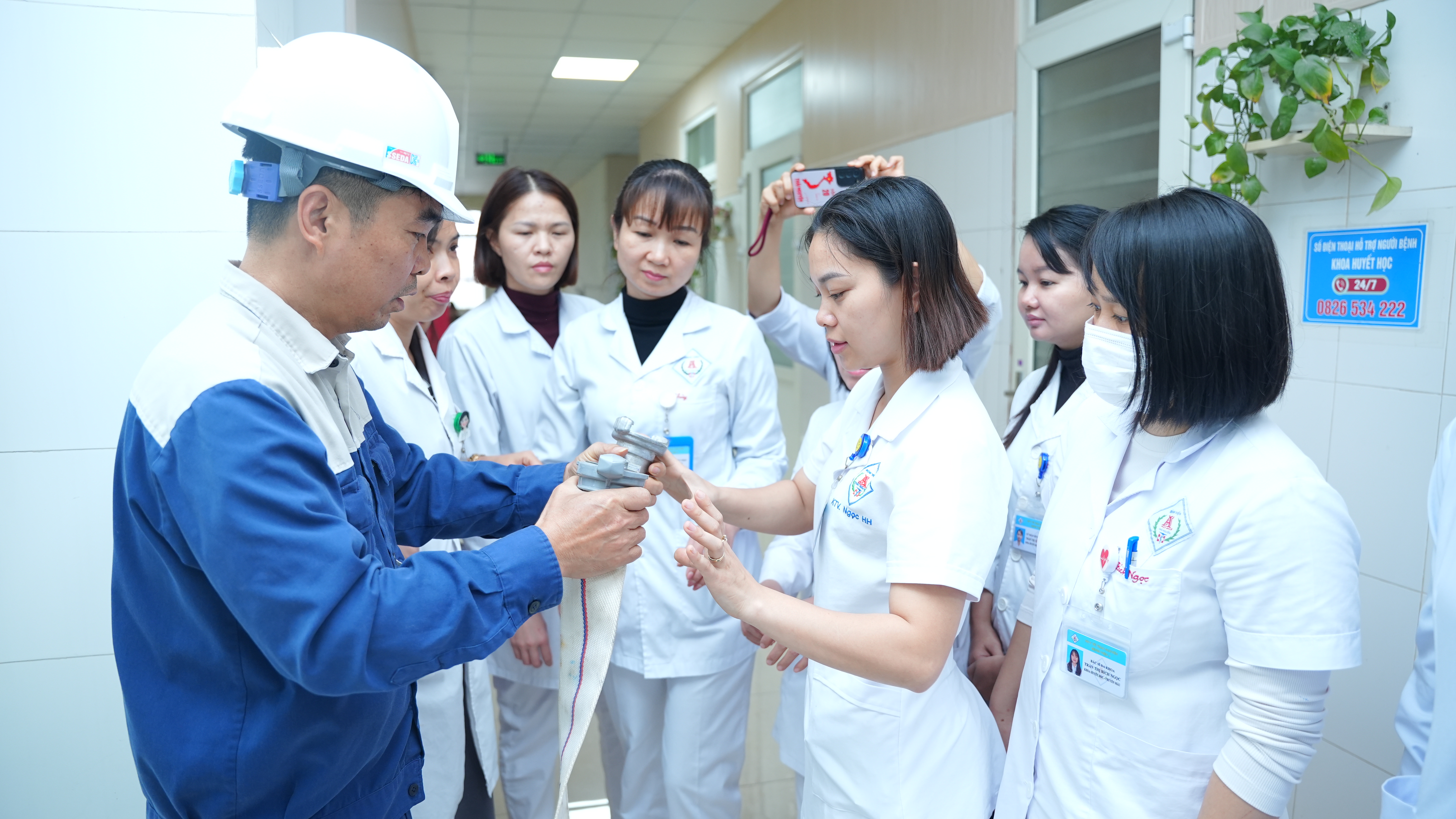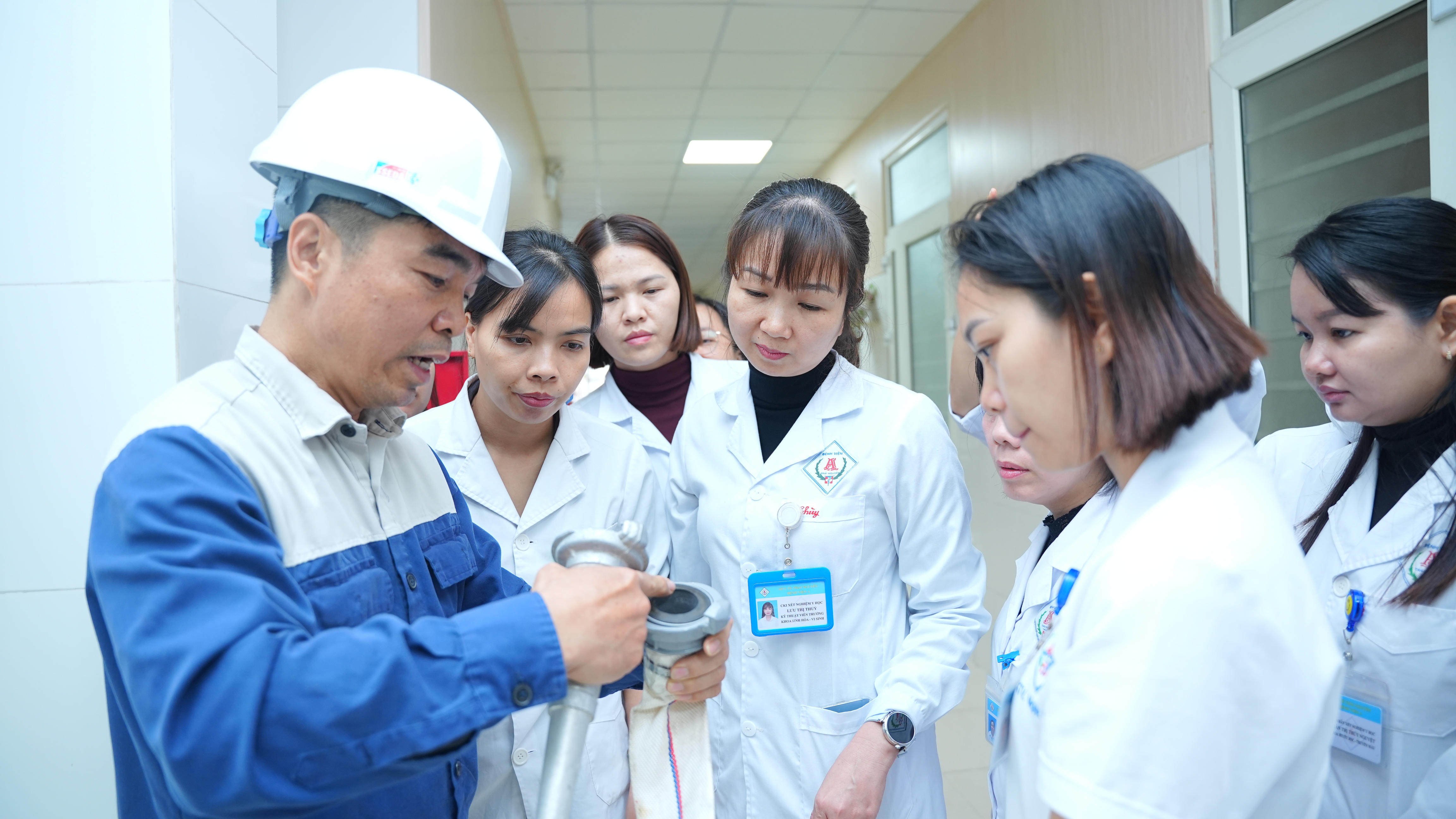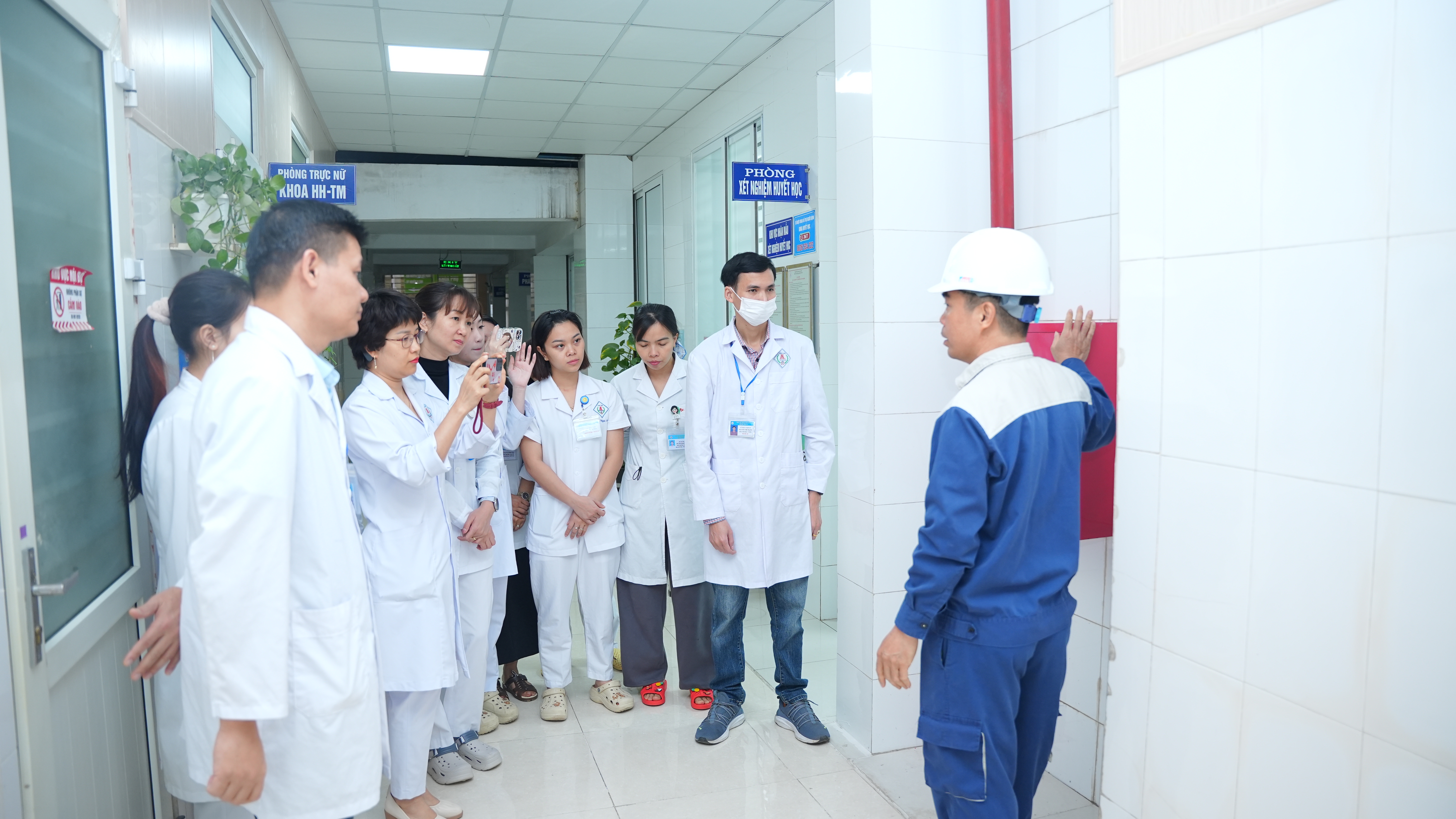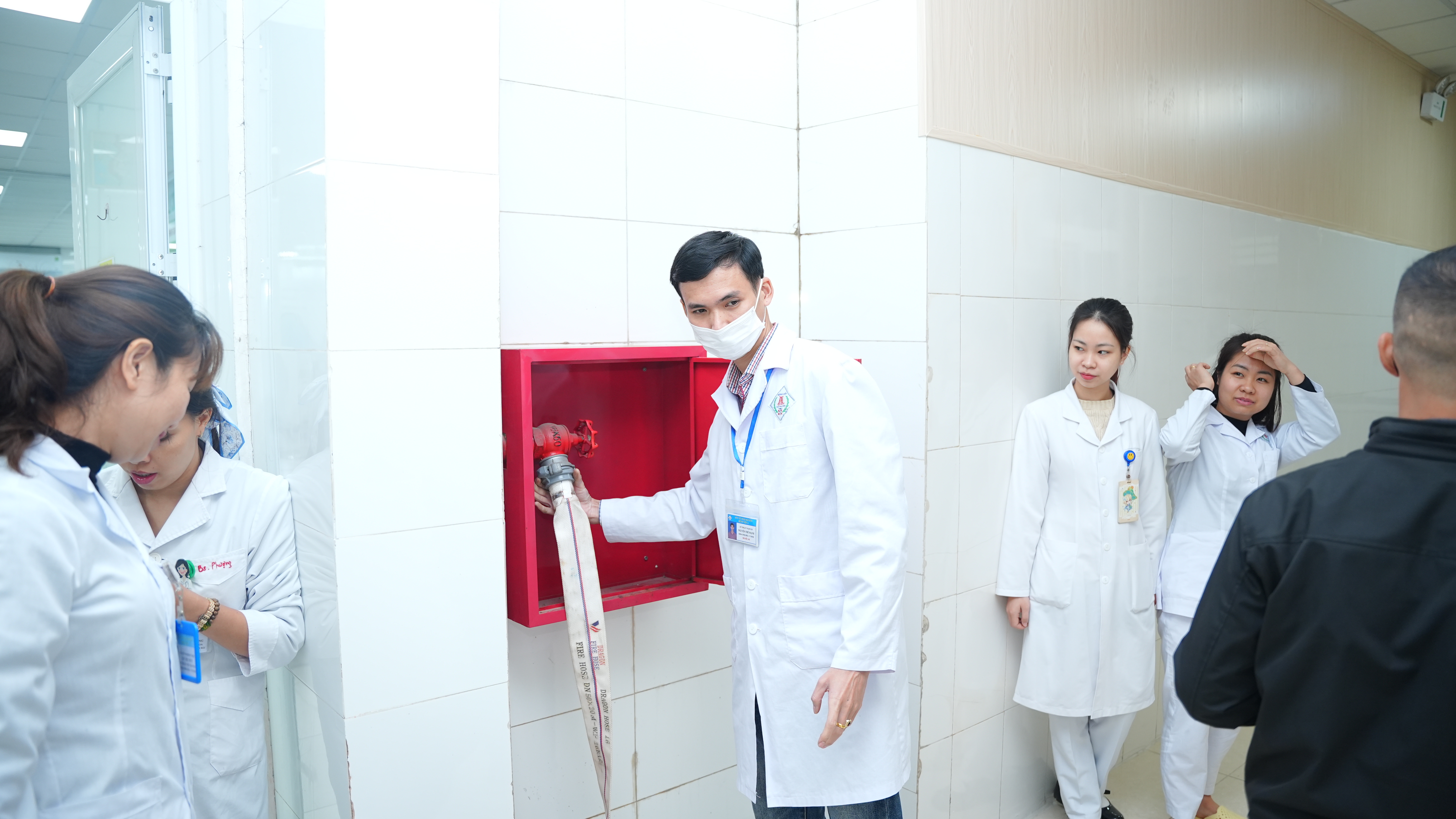 Bệnh viện duy trì phối hợp với lực lượng Cảnh sát PCCC và CNCH trong công tác kiểm tra, hướng dẫn chuyên môn, góp phần nâng cao hiệu quả phòng ngừa và xử lý sự cố.