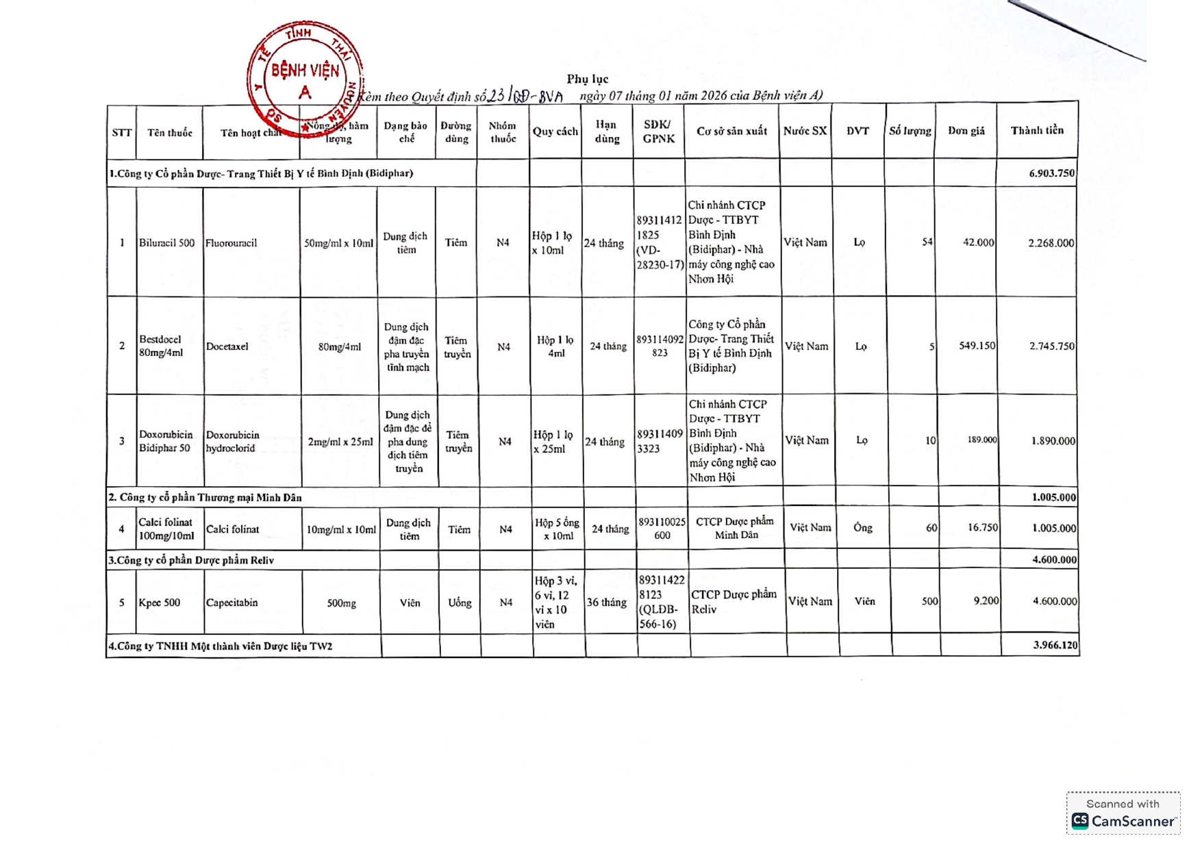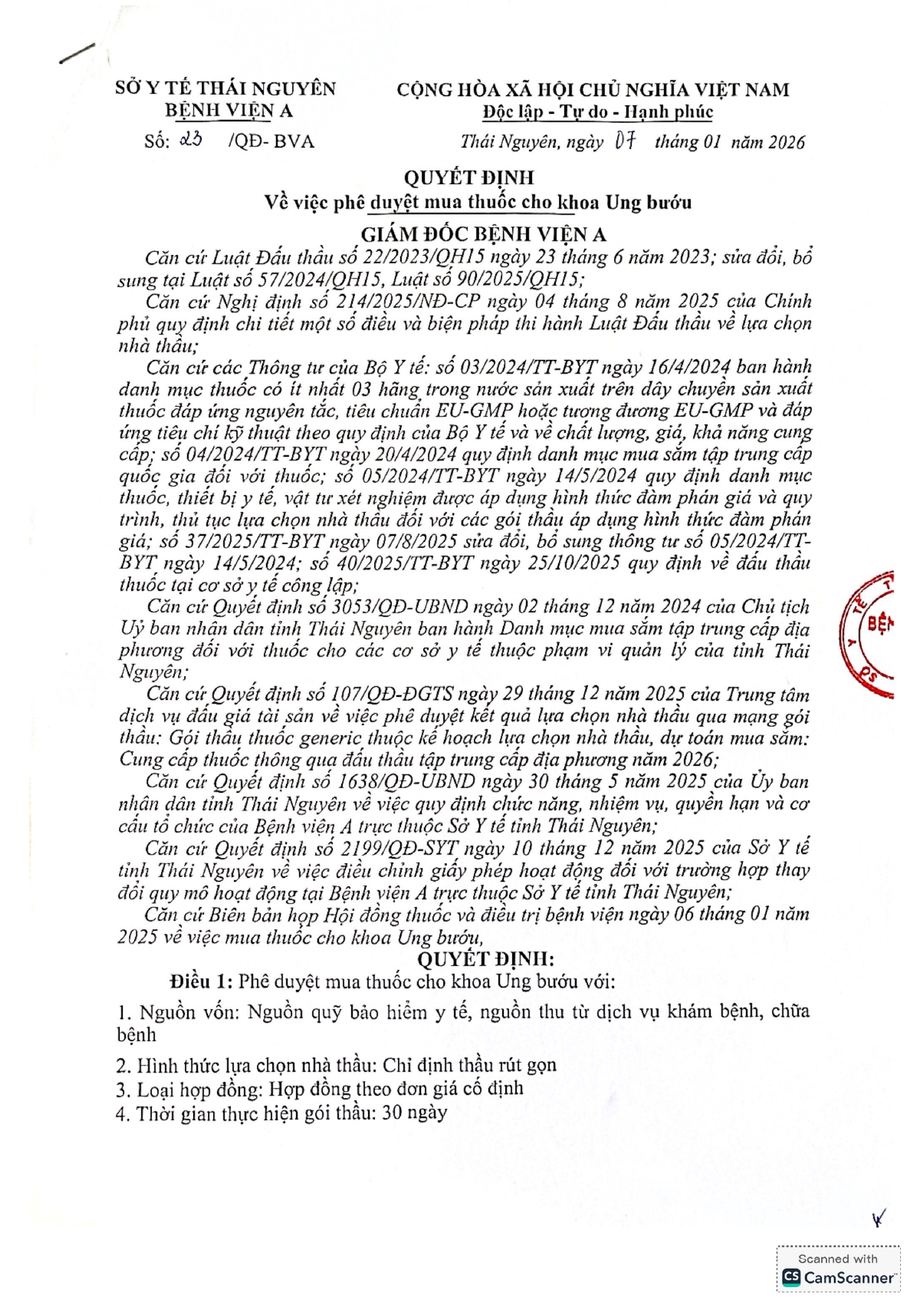 Quyết định: Về việc phê duyệt mua thuốc cho khoa Ung bướu