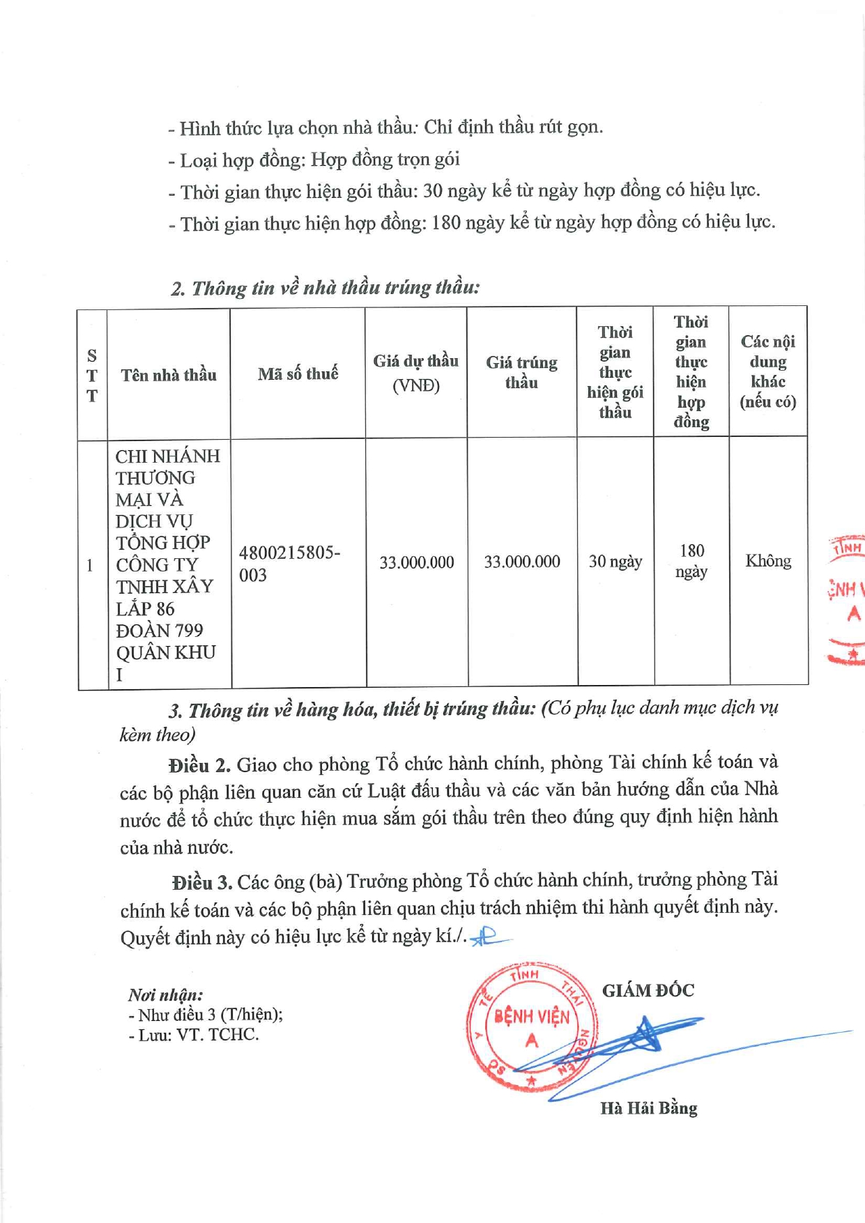 Quyết định về việc phê duyệt kết quả lựa chọn nhà thầu gói thầu: Duy trì, bảo vệ hệ thống cổng thông tin điện tử benhvienathainguyen.com.vn Bệnh viện A