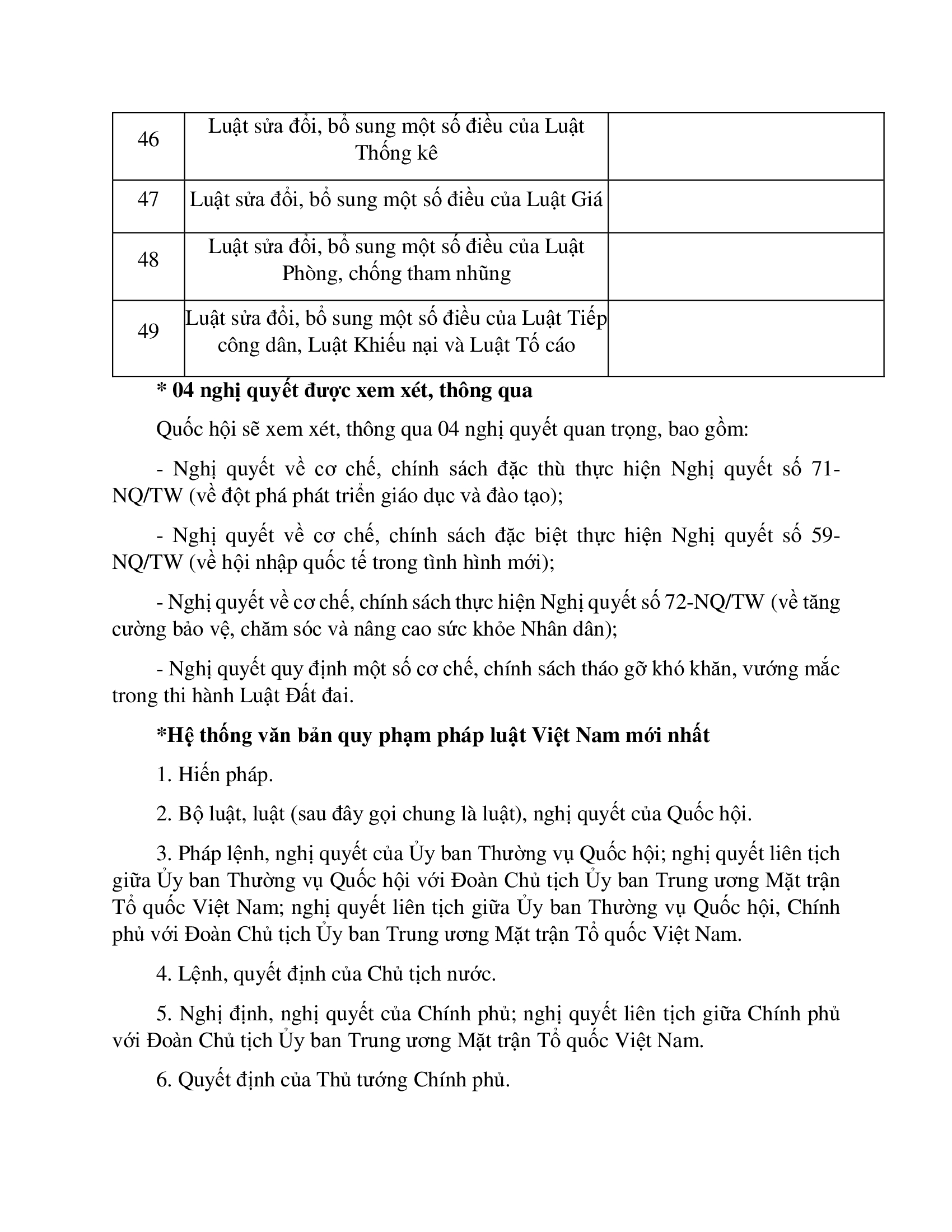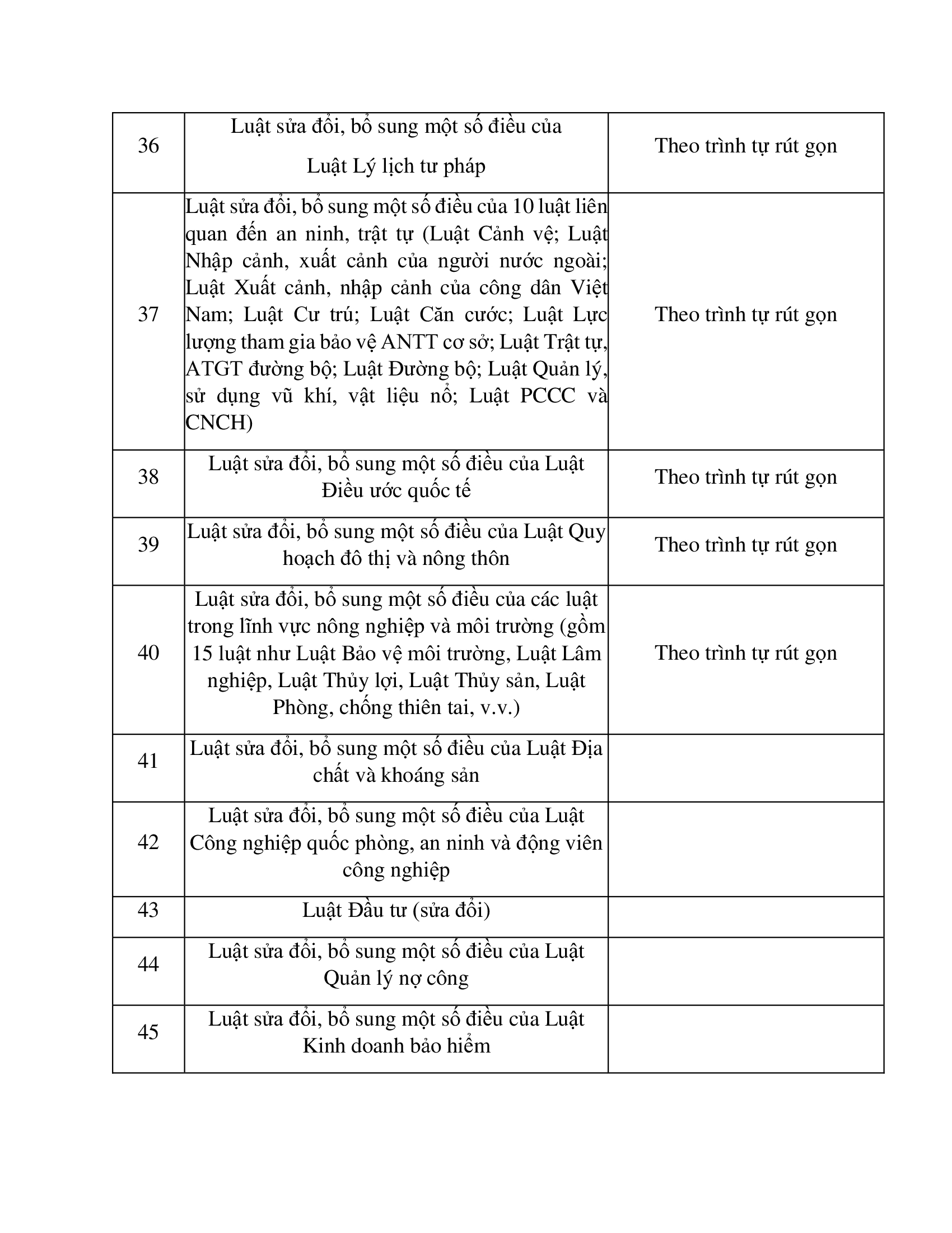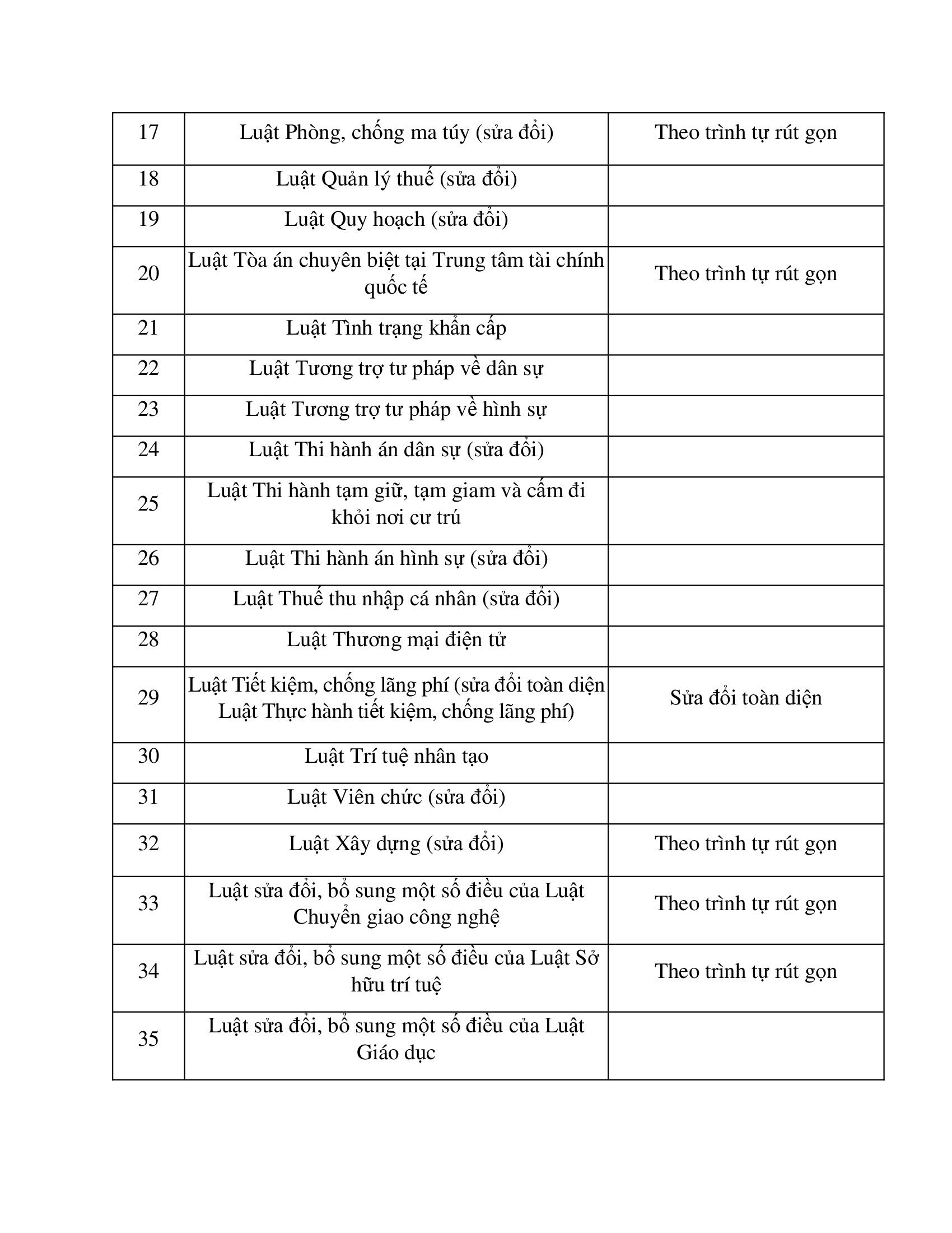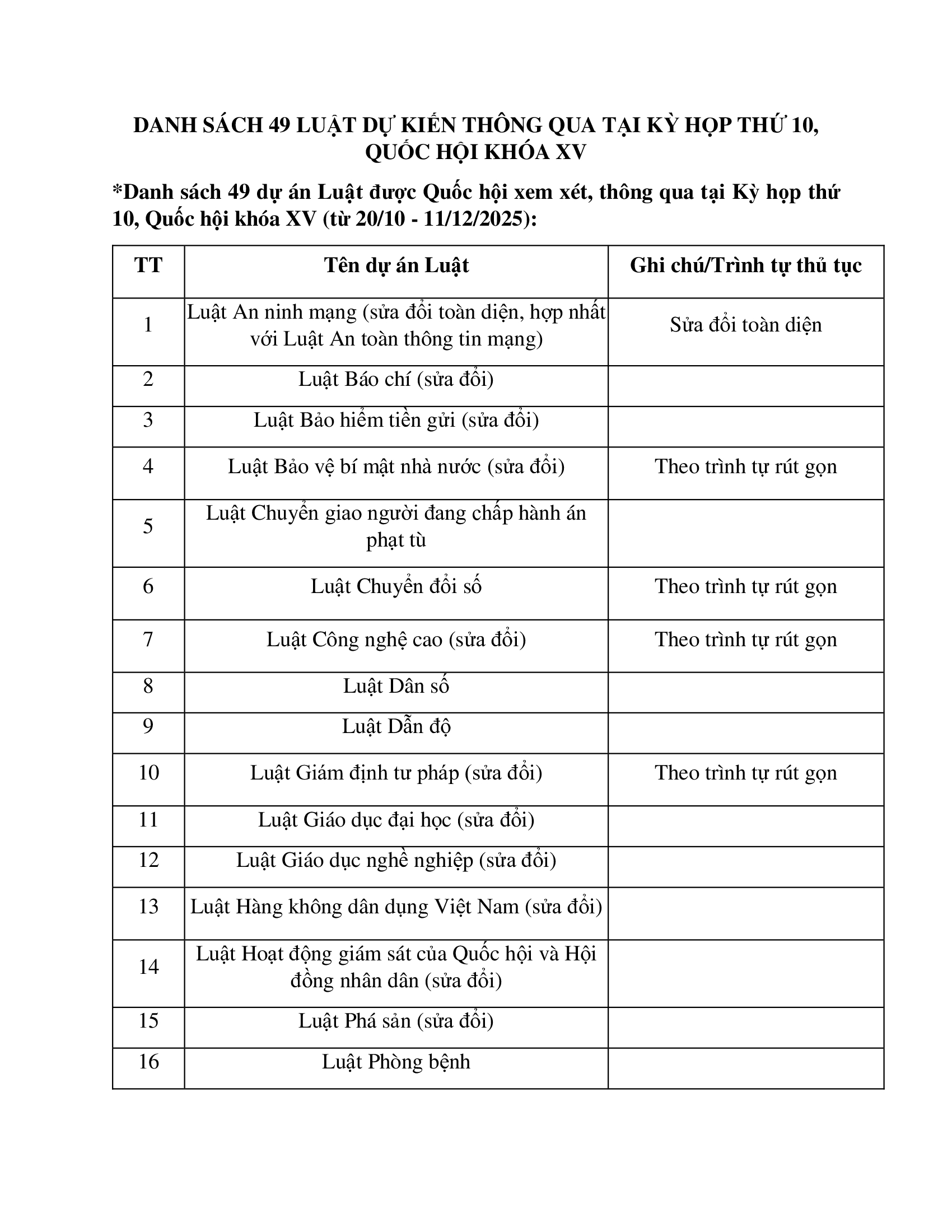 Danh sách 49 luật dự kiến thông qua tại kỳ họp thứ 10, Quốc hội khóa xv
