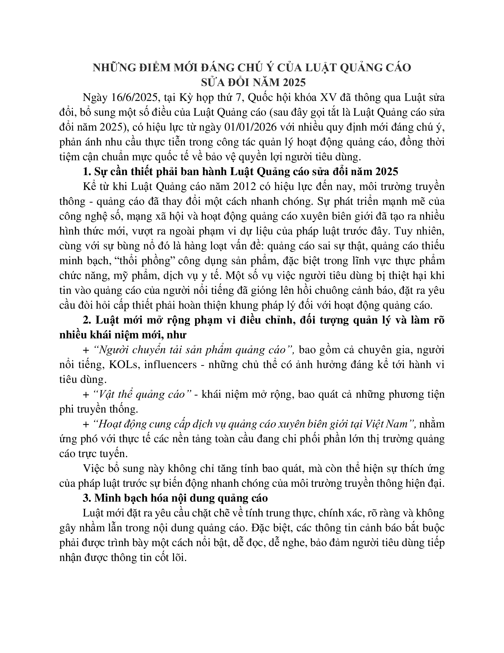 Những điểm mới đáng chú ý của Luật Quảng cáo  sửa đổi năm 2025