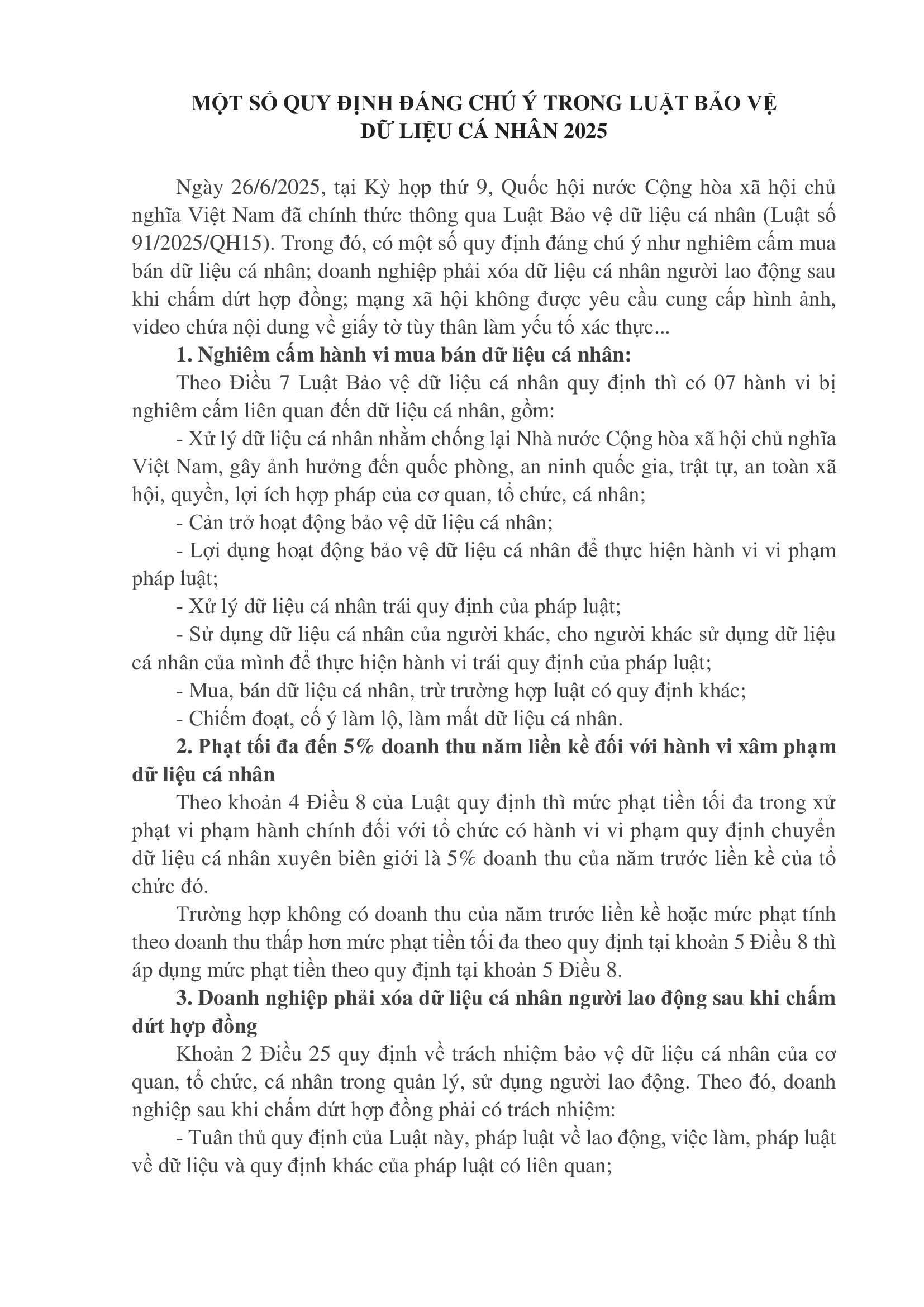 Nội dung cơ bản của Luật Bảo vệ dữ liệu cá nhân  năm 2025