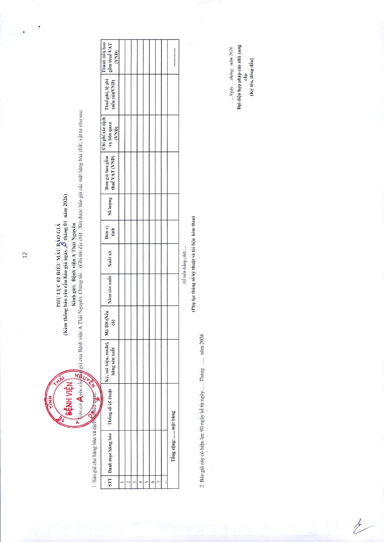 • Thông báo mời chào giá gói thầu: Mua sắm vật tư văn phòng phẩm phục vụ khám sức khỏe cho Bệnh viện A ( 05/01/2026)