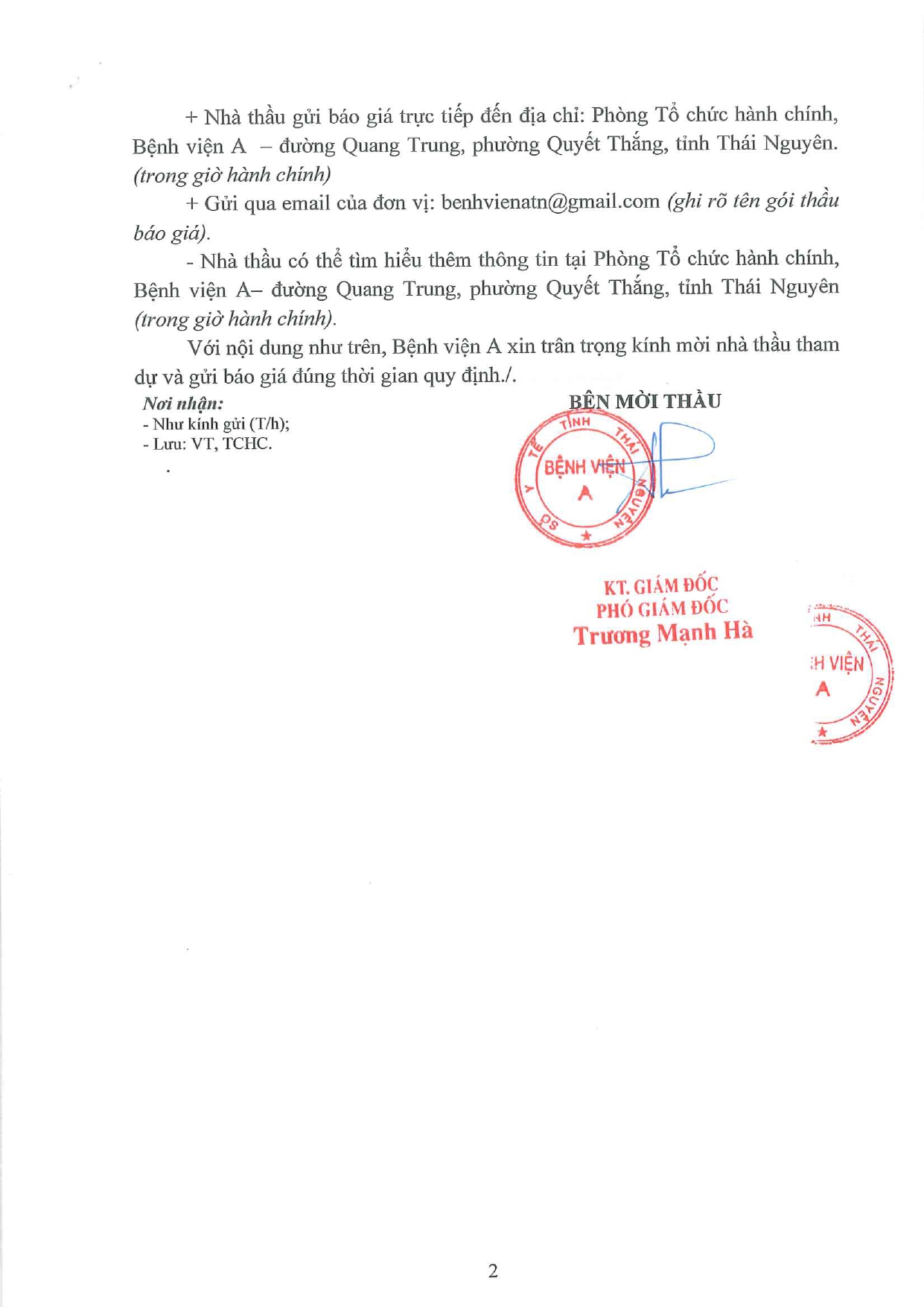 • Thông báo mời chào giá gói thầu: Mua bổ xung hóa chất, vật tư xét nghiệm, thiết bị y tế tháng 1 năm 2026 của Bệnh viện A ( 19/01/2026)