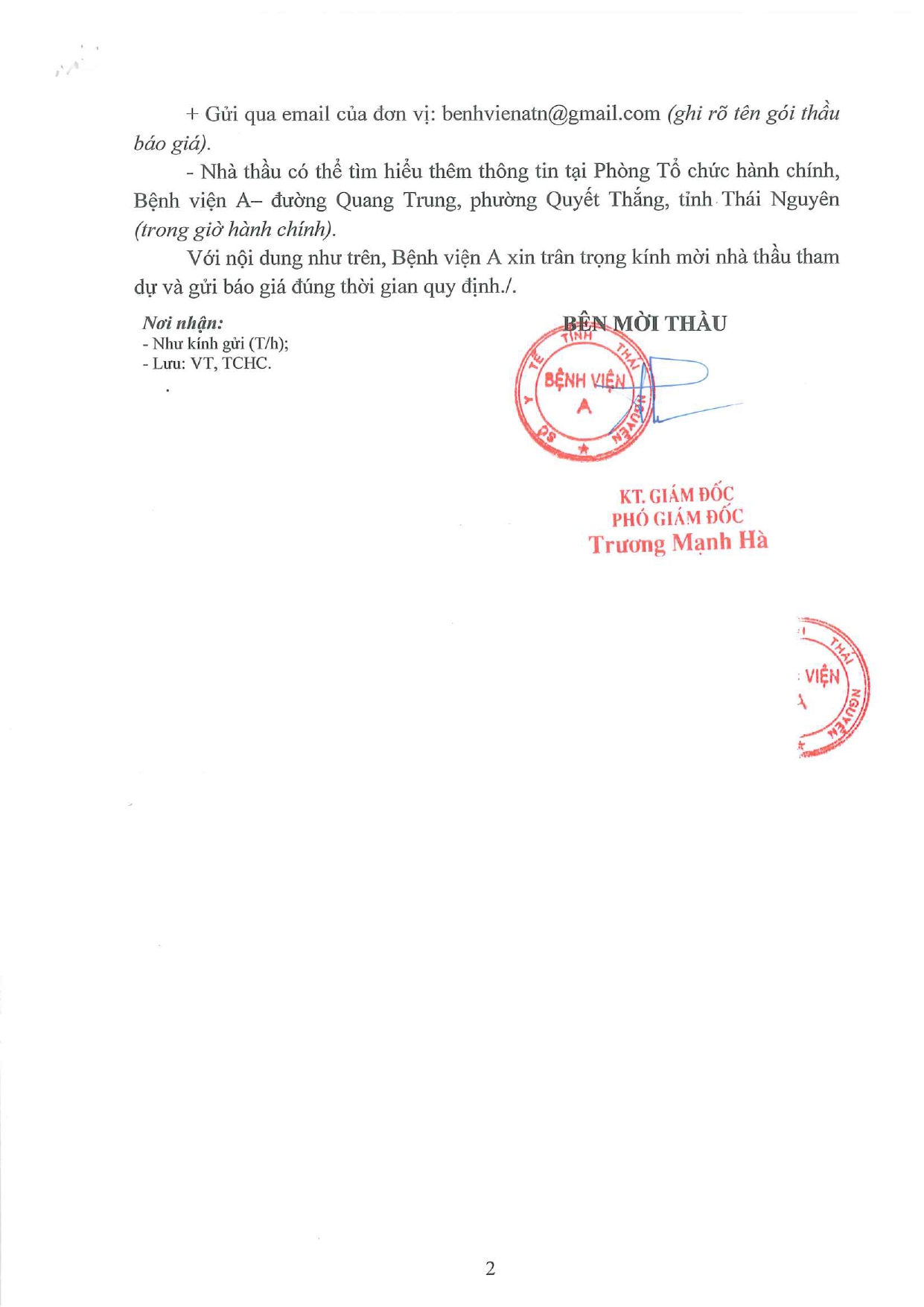 • Thông báo mời chào giá gói thầu: Mua bổ xung hóa chất, vật tư xét nghiệm, thiết bị y tế tháng 1 năm 2026 của Bệnh viện A ( 19/01/2026)