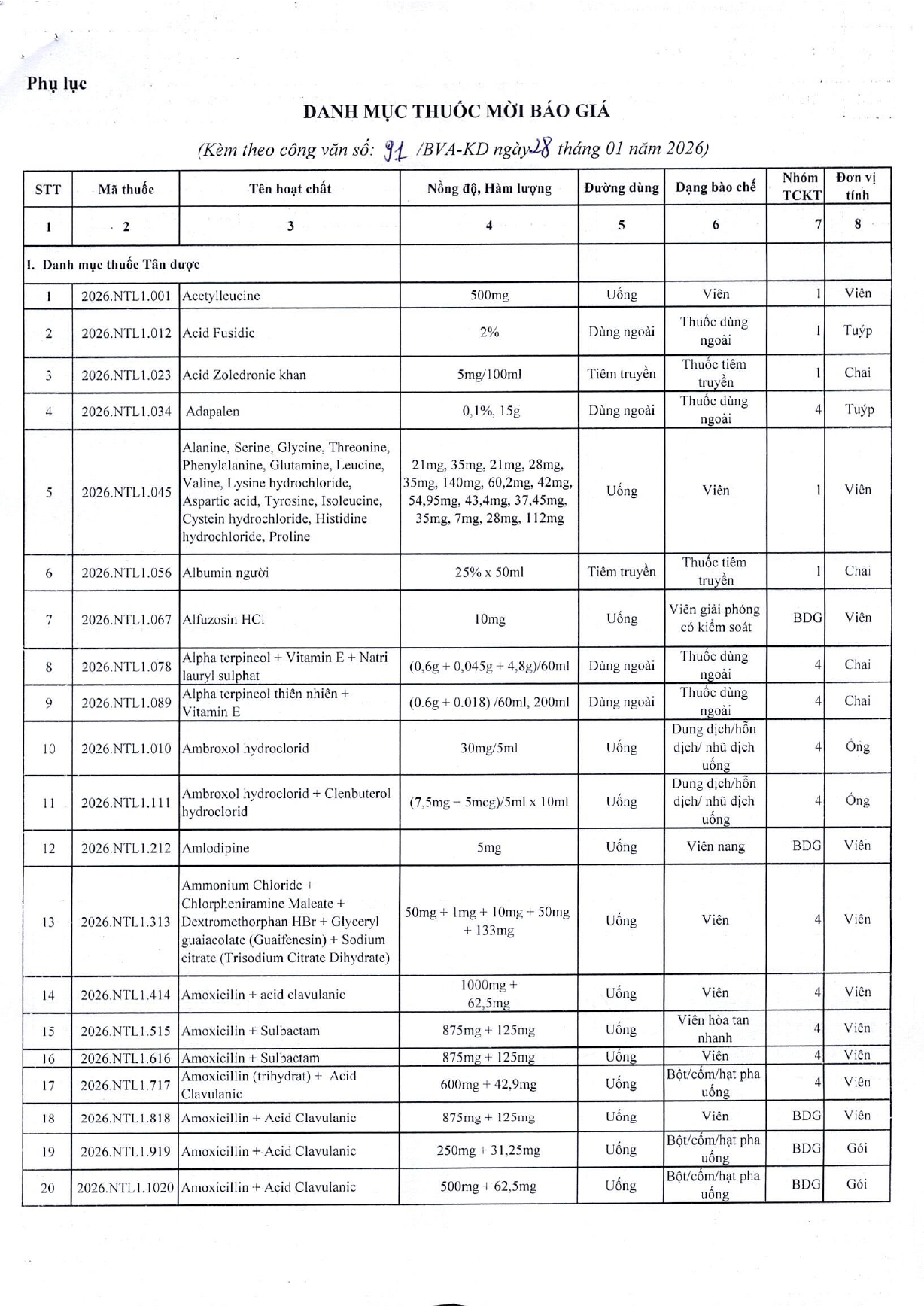 • Thông báo mời chào giá gói thầu: Mua bổ xung hóa chất, vật tư xét nghiệm, thiết bị y tế tháng 1 năm 2026 của Bệnh viện A ( 19/01/2026)