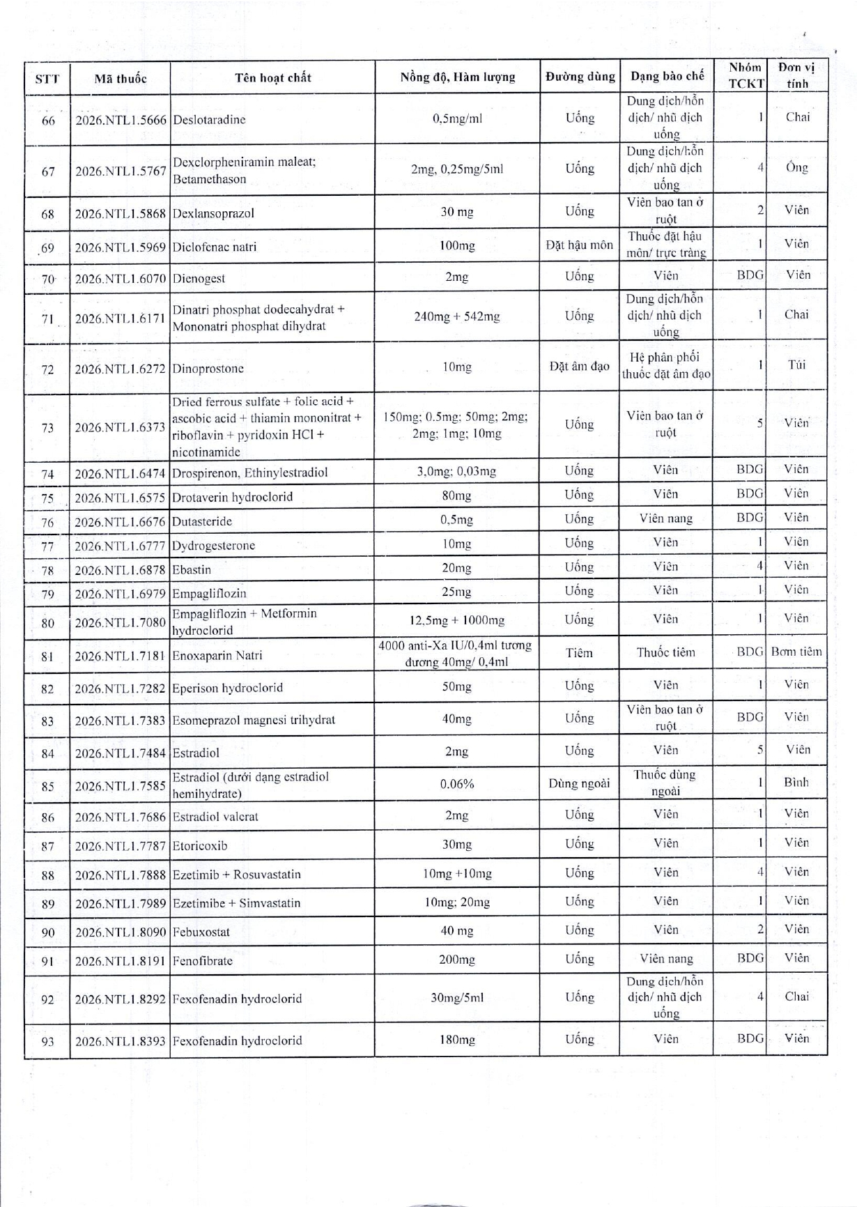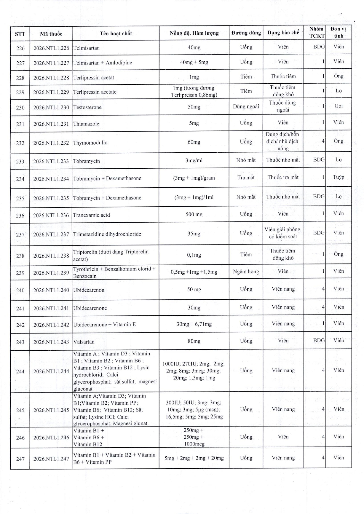 • Bảng giá thuốc