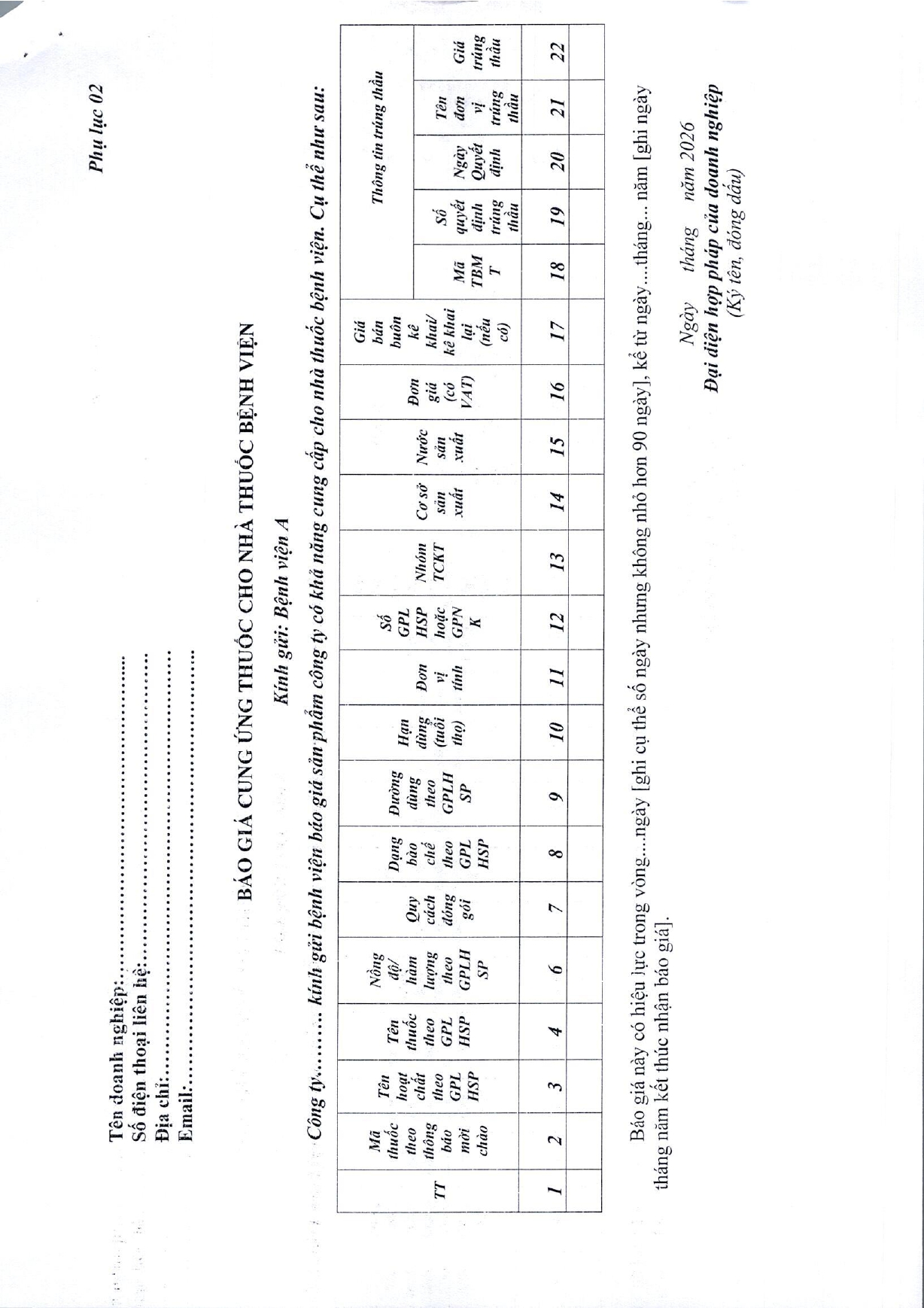• Thông báo mời chào hàng gói thầu: Thay thế linh kiện máy in, mực in phục vụ công tác chuyên môn khám chữa bệnh tại Bệnh viện A ( 09/01/2026)