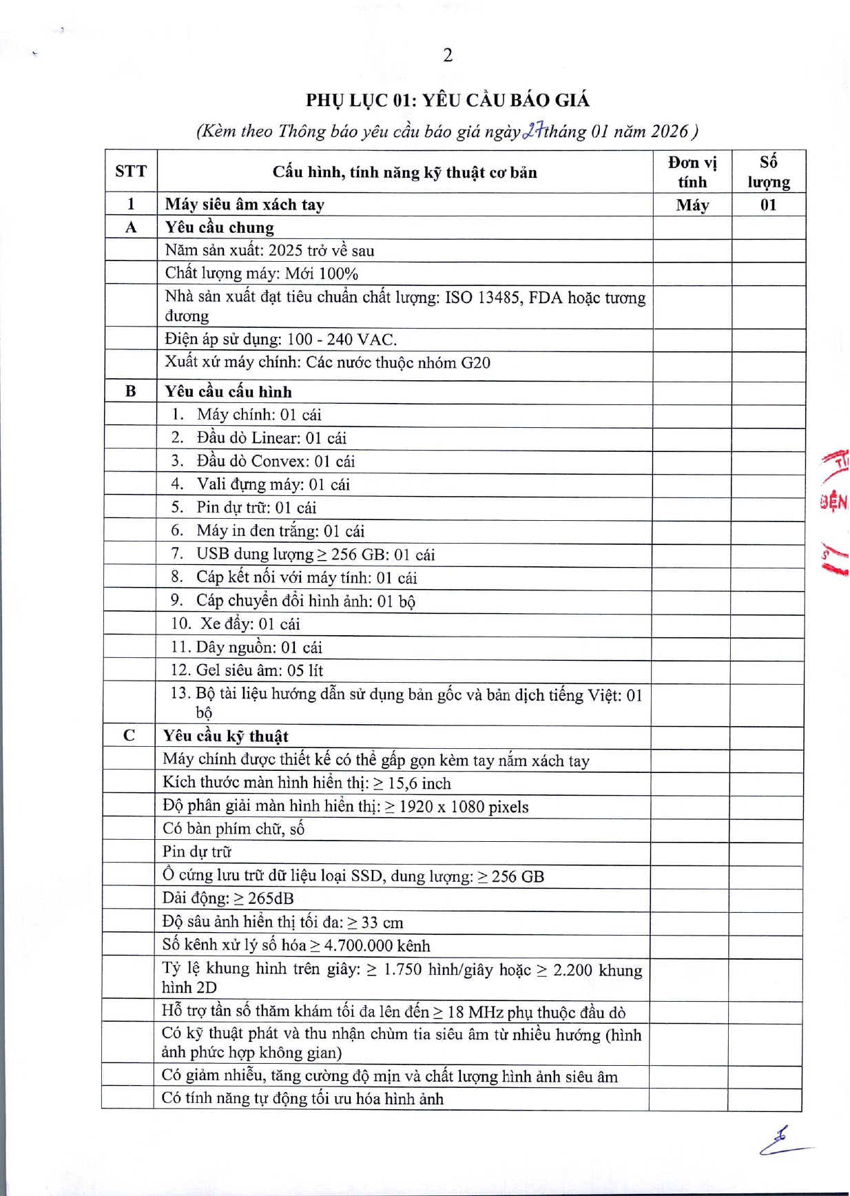 Thông báo mời chào giá gói thầu: Mua sắm máy siêu âm xách tay của Bệnh viện A