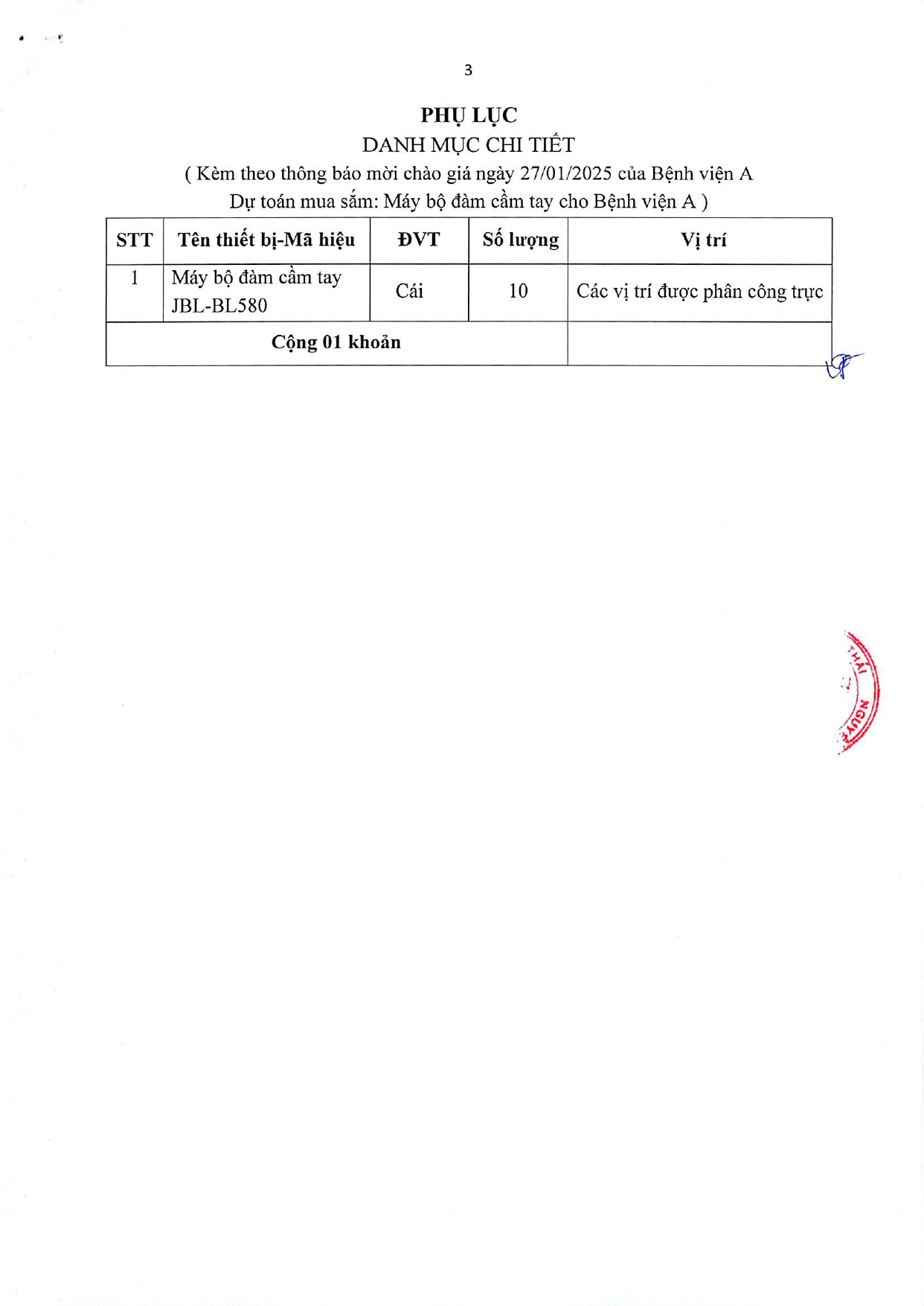 Thông báo mời chào giá gói thầu: Mua sắm bộ đàm cầm tay cho Bệnh viện A