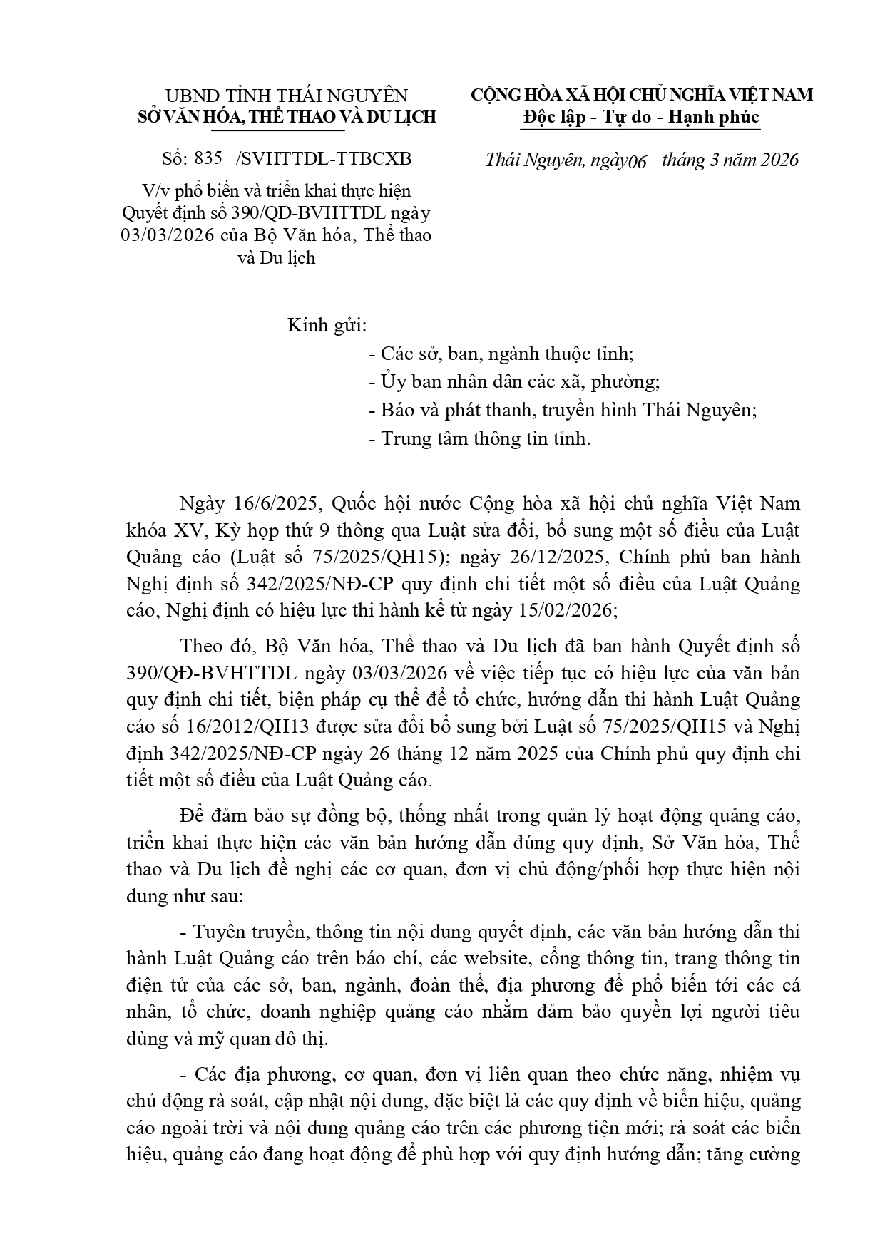 Phổ biến và triển khai thực hiện Quyết định số 390/QĐ-BVHTTDL ngày 03/03/2026 của Bộ Văn hóa, Thể thao và Du lịch