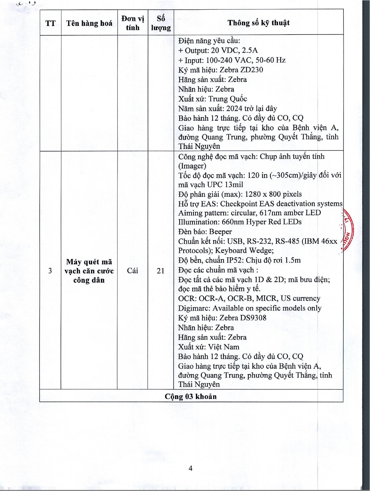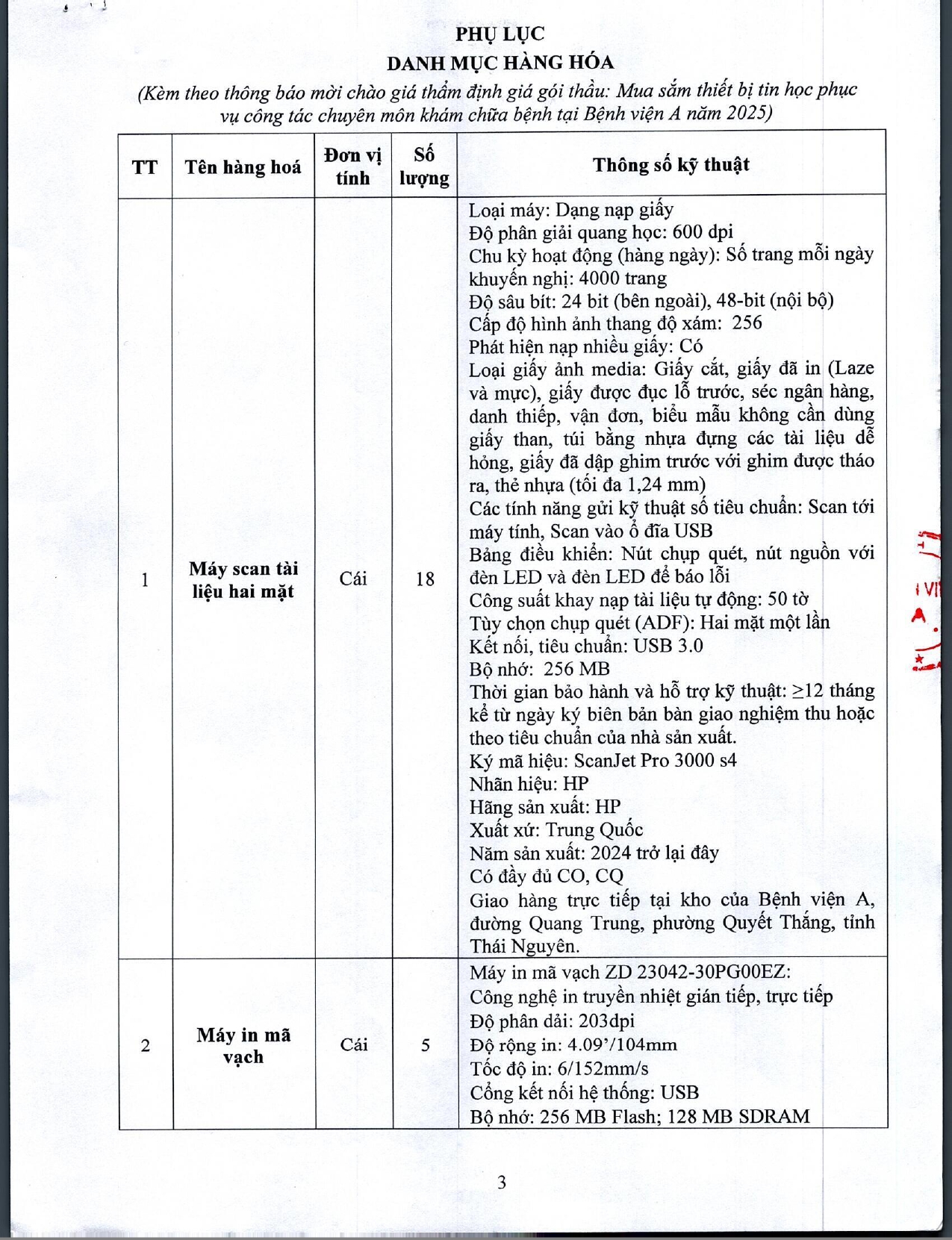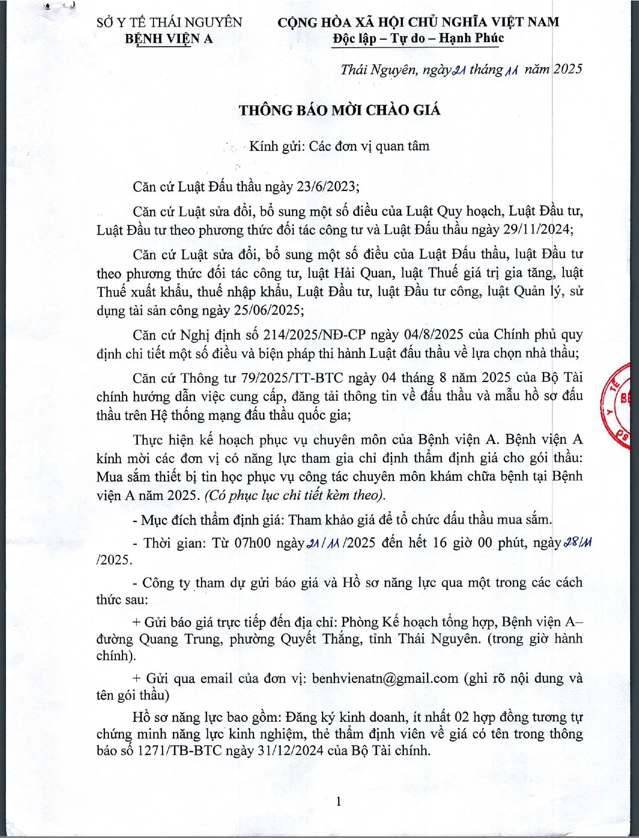 Thông báo mời chào giá gói thầu: Mua sắm thiết bị tin học phục vụ công tác chuyên môn khám chưa bệnh tại Bệnh viện A năm 2025
