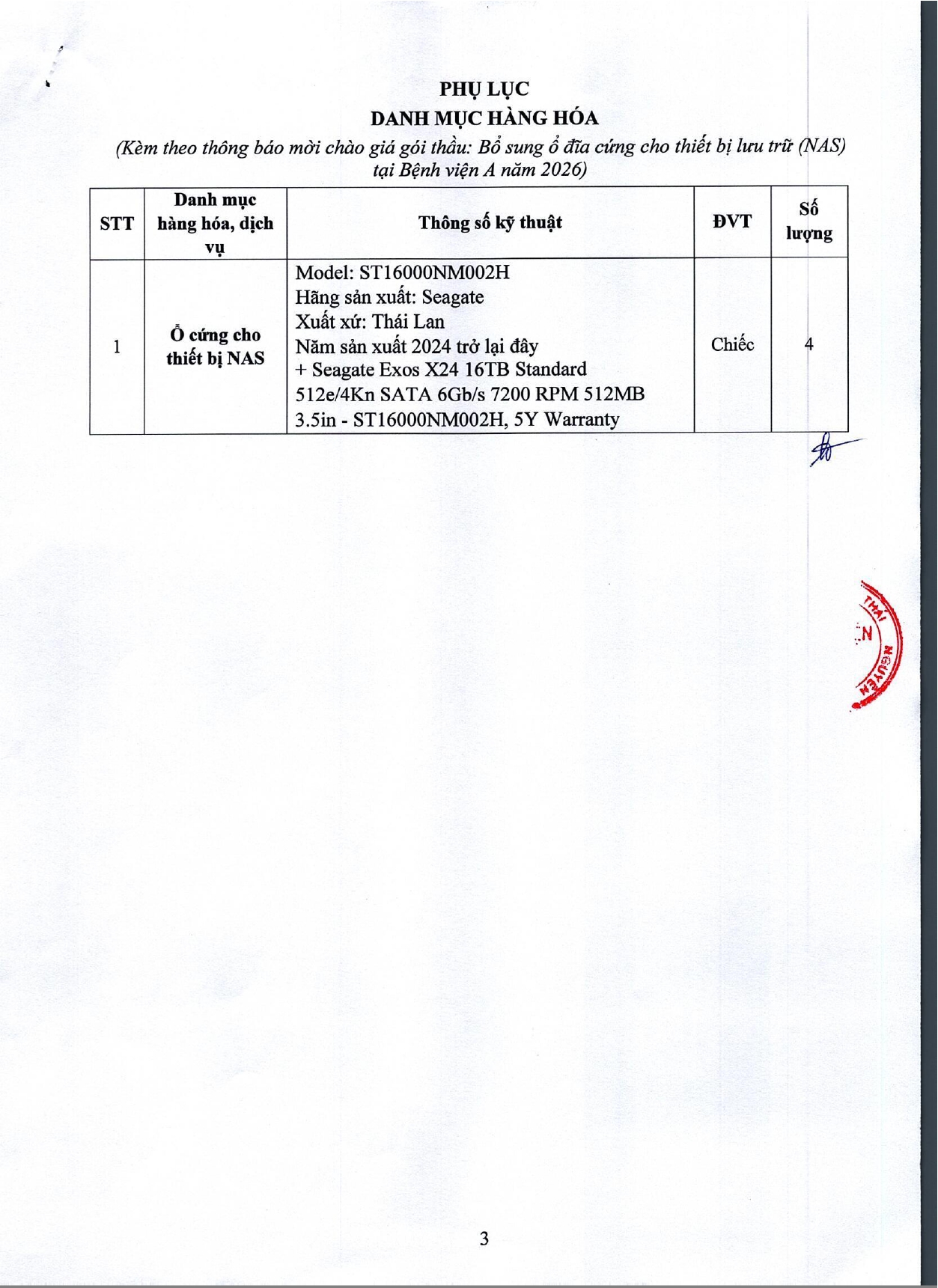 Thông báo mời chào giá gói thầu: Bổ sung ổ đĩa cứng cho thiết bị lưu trữ (NAS) tại Bệnh viện A