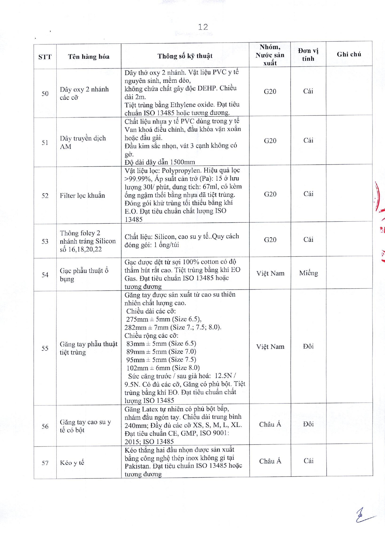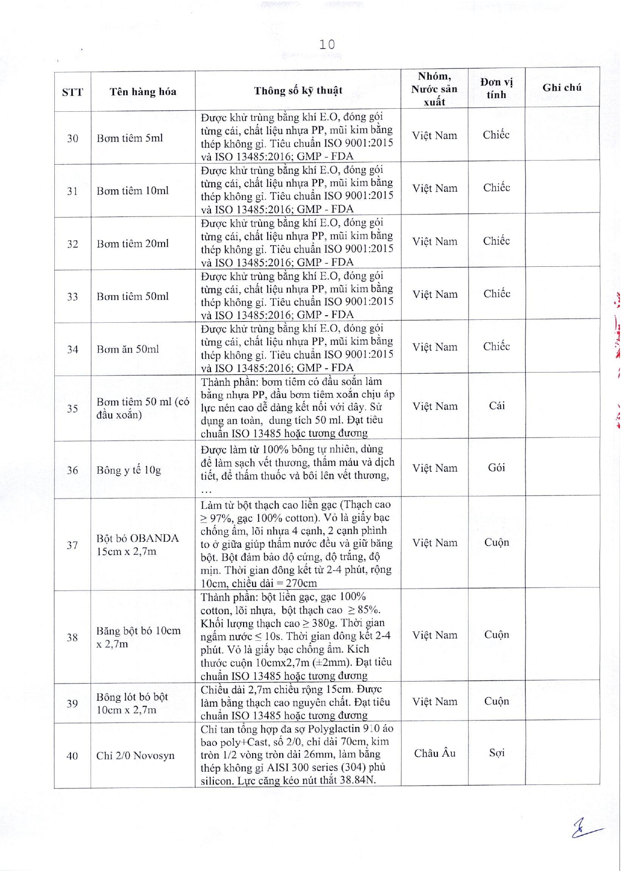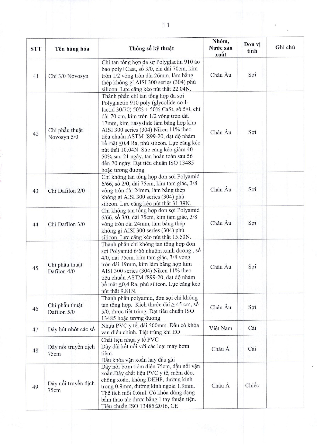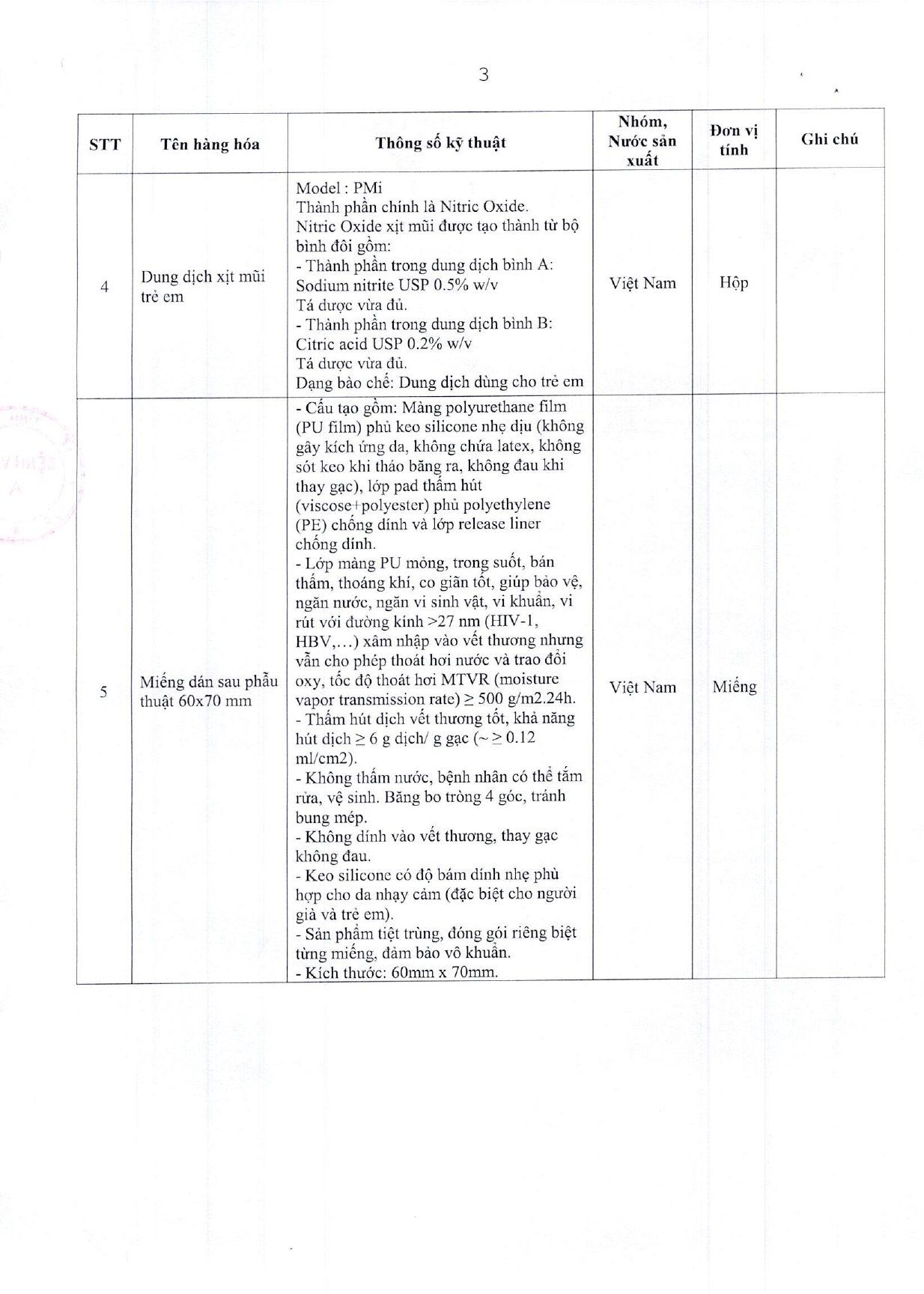 • Bảng giá vật tư