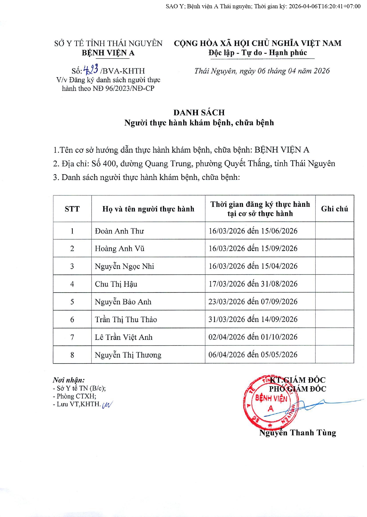 • Danh sách người thực hành khám bệnh, chữa bệnh ( 08/12/2025)