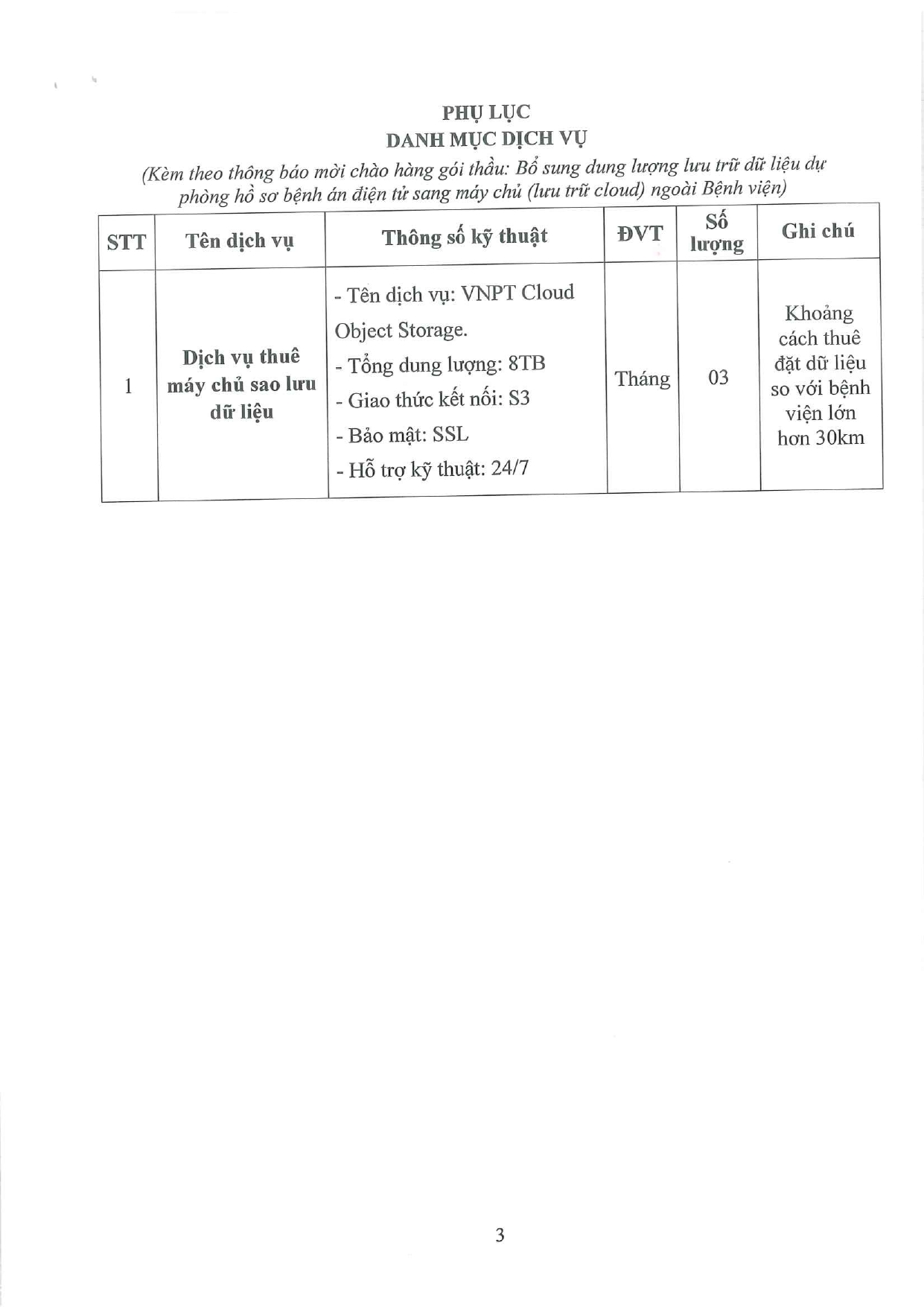 Thông báo chào hàng gói thầu: Bổ sung dung lượng lưu trữ dữ liệu dự phòng hồ sơ bệnh án điện tử sang máy chủ ngoài Bệnh viện