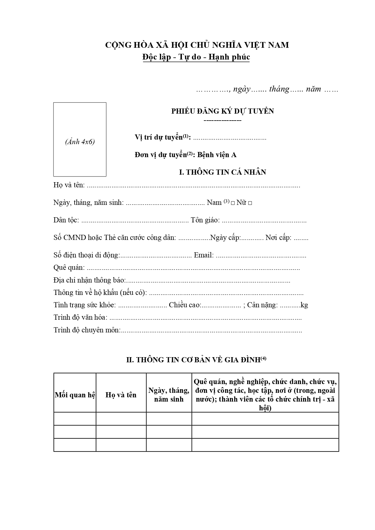 • Thông báo tuyển dụng hợp đồng lao động chuyên môn, nghiệp vụ theo Nghị định số 111/2022/NĐ-CP tại Bệnh viện A đợt 1 năm 2026 ( 08/04/2026)