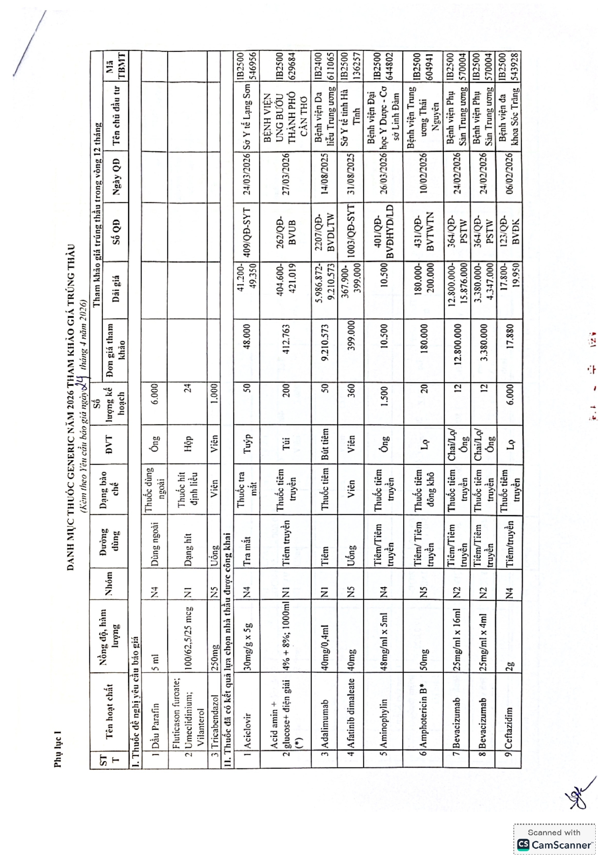• Bảng giá thuốc
